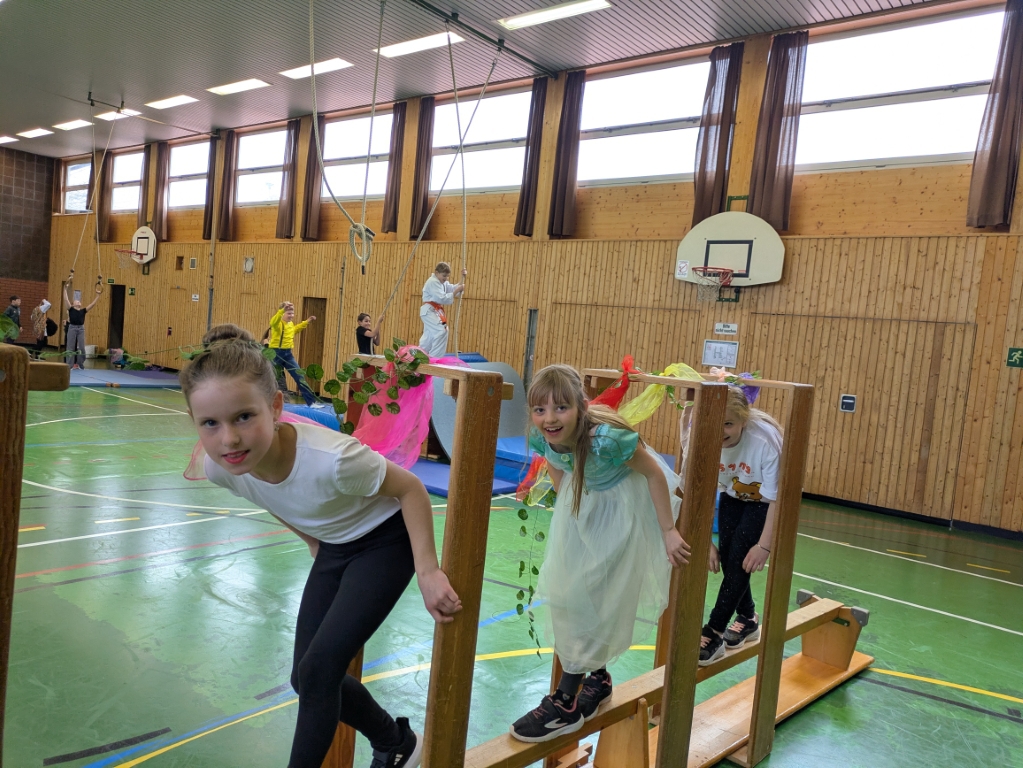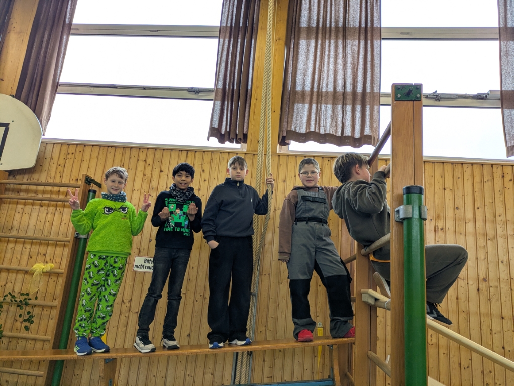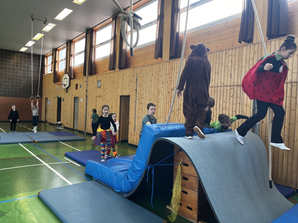 Am Faschingsfreitag durften die Kinder in Kleinlangheim verkleidet in die Schule kommen. Neben Faschingsfeiern in den Klassen war in der Turnhalle auch eine bunte Bewegungslandschaft aufgebaut, in der sich alle Schüler nacheinander austoben durften.