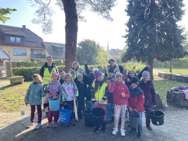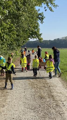 Kinder – begleitet von ihren Lehrerinnen und Lehrern – voller Tatendrang aus, um die Umgebung von achtlos weggeworfenem Müll zu befreien.