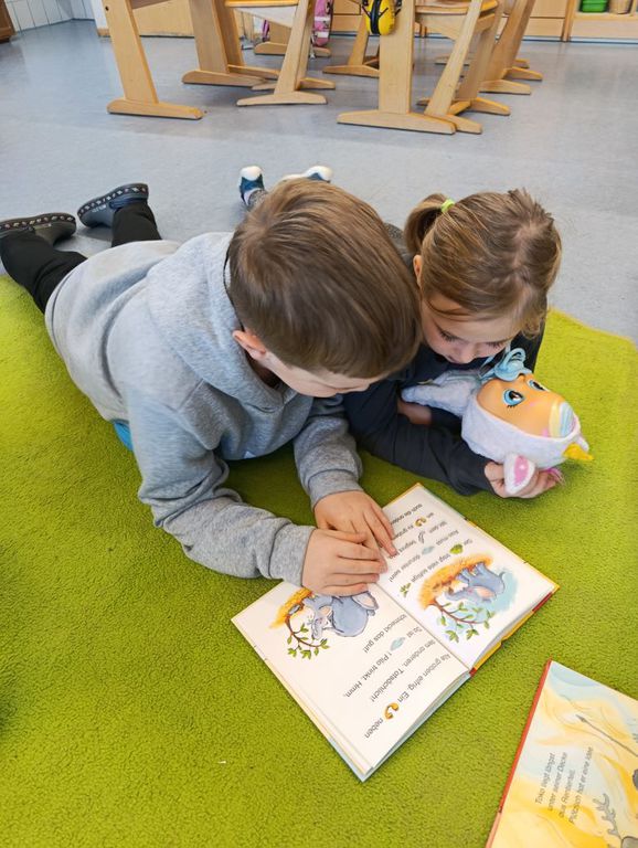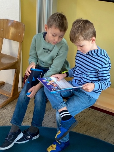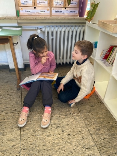 Der bundesweite Vorlesetag fand natürlich auch im Großlangheimer Schulhaus Anklang. Überall sah man die Kinder der zweiten und ersten Klassen an diesem Vormittag vertieft in die Lektüre von kindgerechten Büchern. Zum Schulbeginn im Sommer dieses Jahres wurde jeder Zweitklässler zum Lesepaten für einen Erstklässler ernannt. Und jetzt haben die großen Lesepaten den Tag genutzt, um ihren „Patenkindern“ etwas in den Klassenzimmern, auf dem Flur oder auf den Treppen vorzulesen. Zum Abschluss wurde gemeinsam noch ein schönes Lied gesungen.