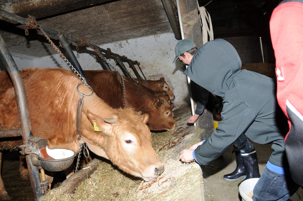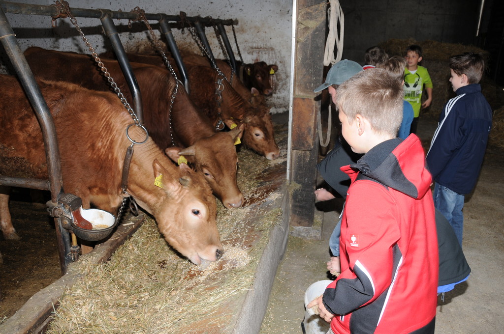 Im Kuhstall war die dritte Station. Hier sahen wir uns die Milchkühe an und bestaunten ein neu geborenes Kälbchen, das erst etwa eine halbe Stunde alt war.