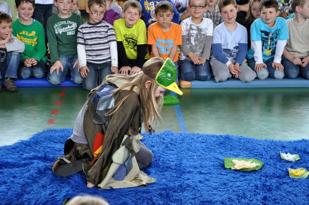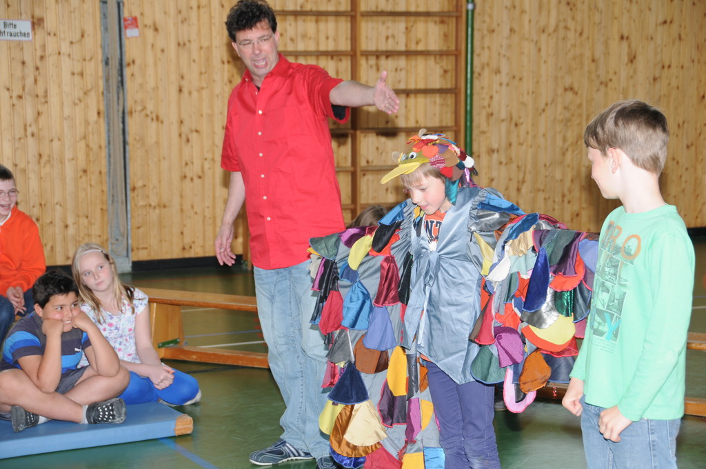 Donnerstagvormittag wurde die Turnhalleder Volksschule Kleinlangheim zu einer Opernbühne und die Schüler zu Schauspielern. Zwei ausgebildete Opernsänger führten Sergej Prokofjews Oper „Peter und der