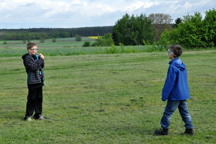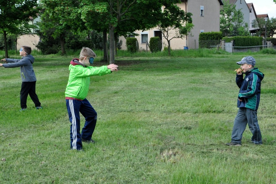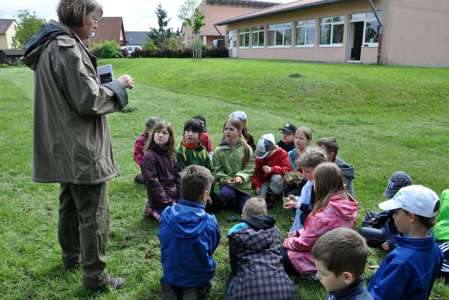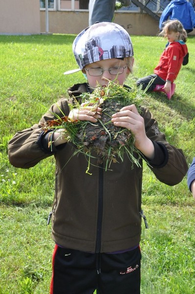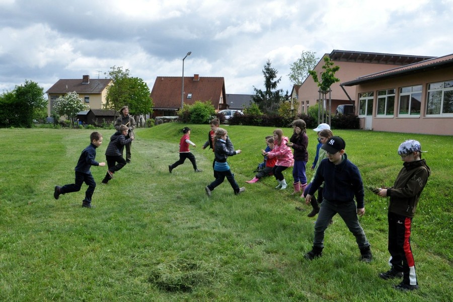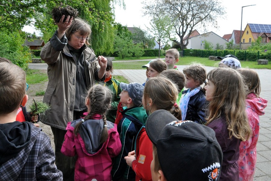 Das Wetter spielte erfreulicherweise mit, als sich die Klasse 2a mit der Diplombiologin Susanne v. Finckenstein und ihrer Lehrerin Kerstin Schiersch auf den Weg machten, um das Leben der Vögel im Frühling zu erforschen. Viele lehrreiche und lustige Naturerfahrungsspiele machten den Kindern besonderen Spaß. So schlüpften sie in die Rolle der Vogeleltern, flöteten sich einen Partner herbei und bauten aus verschiedenen Materialien kleine Nester, die sie in der Hecke versteckten. Das am besten getarnte Vogelnest hatte gewonnen. Anschließend wurden (Schokoladen-)eier gelegt, „gebrütet“ und die Nester vor dem Kuckuck bewacht, der immer darauf aus war, sein eigenes Ei in die Nester zu legen. Letztendlich gab es nach dem Schlüpfen der kleinen Vögelchen eine Menge zu tun: Immer wieder musste für die hungrigen Kleinen Futter herbei geschafft werden. Ganz nebenbei erfuhren die Zweitklässler eine Menge über das Revierverhalten der Vögel und die vielen verschiedenartigen Nestformen der Vogelarten. Ein gelungener und erlebnisreicher Vormittag im Grünen!