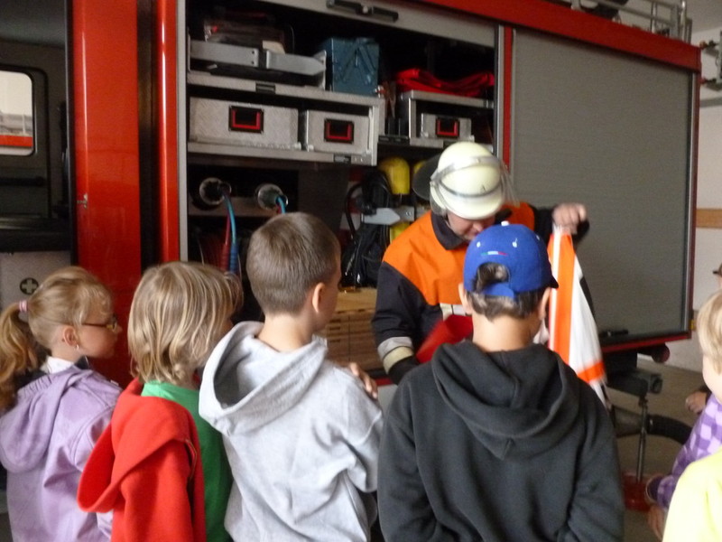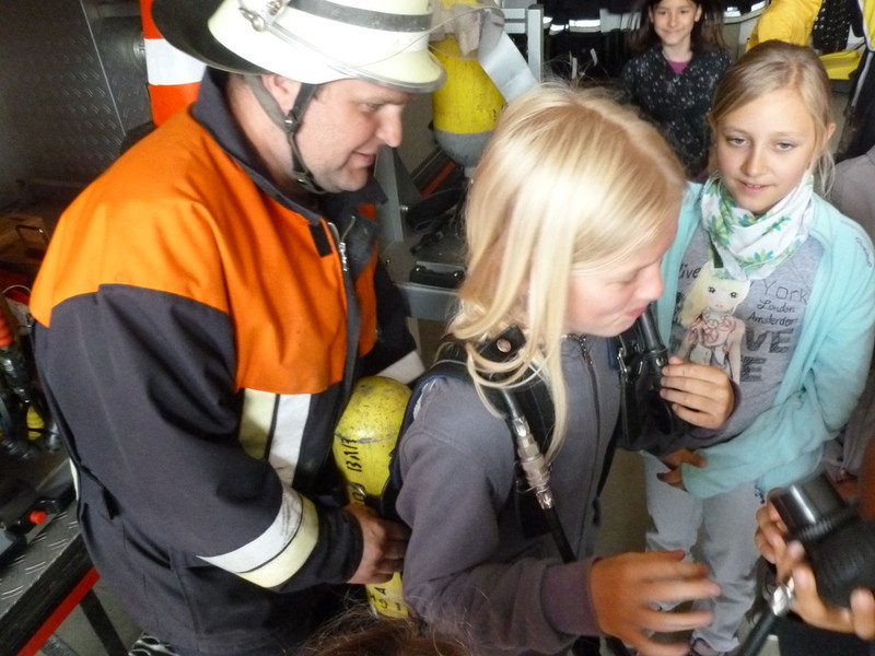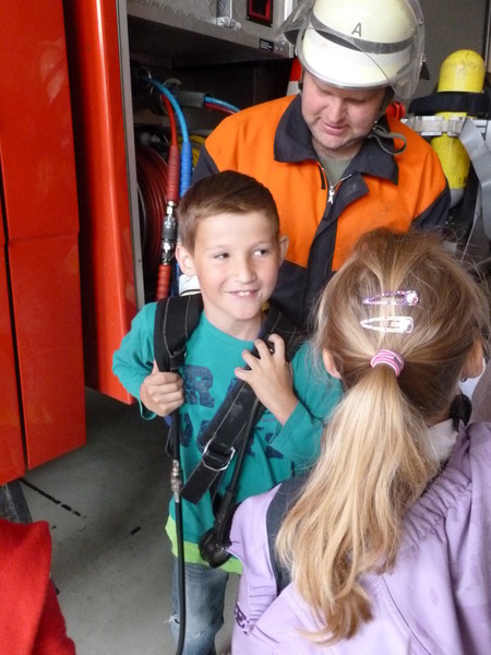 Herr Hörner hat uns alles sehr genau erklärt. Er ist gerne Feuerwehrmann.