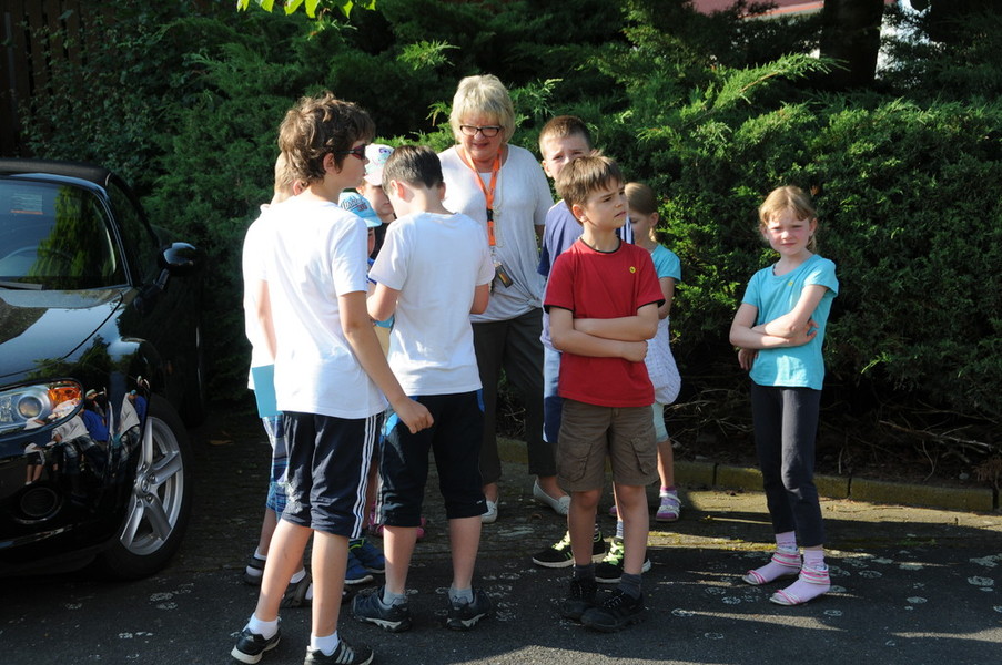 Danach starteten die Kinder in kleinen jahrgangsgemischten Gruppen zu einer Schnitzeljagd, in der sie miteinander schwierige Aufgaben bewältigen mussten. Am Ende fanden sie neben einer Belohnung auch einen Buchstaben zum Motto der Woche.