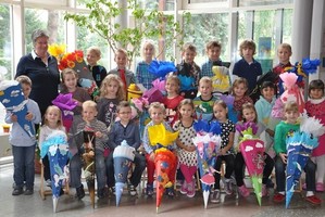 Nachdem die Eltern ihre ABC - Schützen mit in ihr Klassenzimmer begleitet hatten, durften sie sich am leckeren Buffet, das die Zweitklasseltern vorbereitet hatten, stärken. Die Erstklässler erlebten währenddessen ihre erste richtige Schulstunde mit ihrer Lehrerin Kerstin Schiersch und freuten sich darauf, daheim endlich ihre gut gefüllten Schultüten auszupacken.