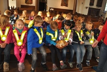 In Fürbitten dachten die Kinder auch an die Menschen, die weniger haben und nicht immer satt werden. Nach dem gemeinsamen Gebet und Gottes Segen begleitete das Lied „Geh mit uns auf unserm Weg“ Schüler und Lehrer schließlich wieder nach Hause.