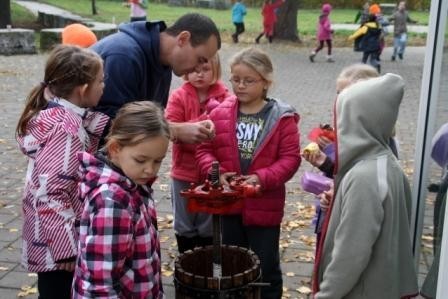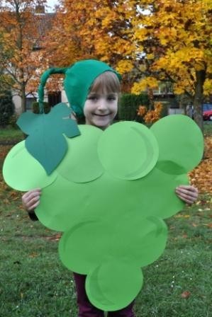 Frau Schiersch hielt alle Aktivitäten und Kinder auf vielen Fotos fest. Die Schüler durften hinter ein „Weintraubenkostüm“ schlüpfen und können nun als Traubenkinder bewundert werden.