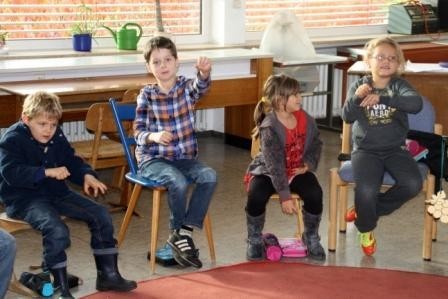 Ihr schauspielerisches Talent konnten die Kinder bei der Fabel vom „Fuchs und den Trauben“mit Frau Schmitt zeigen.
