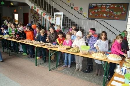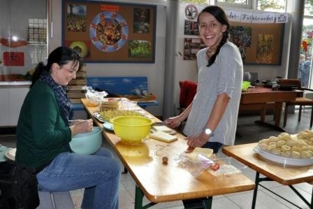 Anschließend verwöhnten zahlreiche Mütter die neuen Traubenexperten mit einem leckeren „Trauben-Buffet“. Es gab Brote mit Traubenmarmelade, Traubenspieße, frischen Traubensaft, Kuchen und Käsfüße.