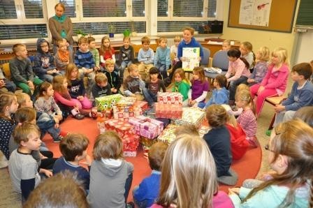 Viele Kinder nahmen sich auch in diesem Schuljahr wieder den Heiligen Sankt Martin zum Vorbild und brachten im Laufe dieser Woche zahlreiche liebevoll verpackte Geschenkkartons ins Großlangheimer Schulhaus. Altersgemäße Spielsachen, etwas Warmes zum Anziehen und einige kleine Überraschungen füllten die Päckchen, wobei natürlich auch etwas zum Naschen nicht fehlen durfte.