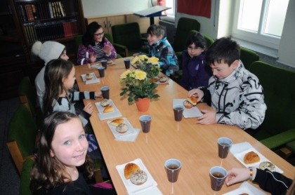 Anschließend hörten sie die Geschichte von der Speisung der 5000 und teilten selbst miteinander das Brot.