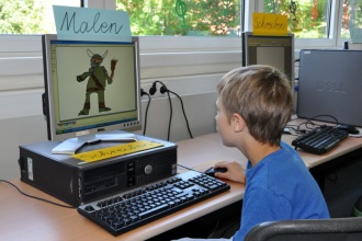 An Computern schufen die Kinder digitale Kunstwerke.