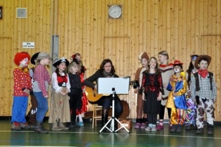 Mit einem gemeinsamen Tanz zu dem Song „Happy“ wurden alle Besucher gleich zu Beginn in gute Laune versetzt. Nach Grußworten der Schulleiterin, Nicole Achter, und der Kleinlangheimer Bürgermeisterin, Gerlinde Stier, sangen alle Kinder das Schullied „Schule ist mehr als Rackern und Schuften“.