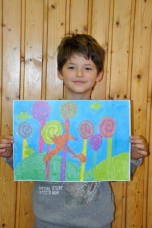 Weitere Aktionen waren der Bau von Instrumenten, Malen mit Zuckerkreide , eine Nachgestaltung zu einem Werk von Mondrian und Jutta Willmann freute sich über fleißige Helfer im Schulgarten.