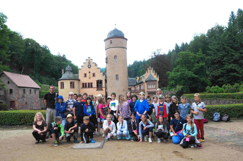 Am Dienstag, den 8. Juli stand die Wanderung zum Schloss Mespelbrunn auf dem Programm. Nach dem Frühstück packten wir unsere Lunch-Pakete in die Rucksäcke. Anschließend trafen wir uns am großen Glockenturm im Hof. Die Lehrer zählten uns durch und als alle da waren, liefen wir los. Nach einigen Metern auf dem Wanderweg entdeckten wir kleine Frösche. Nach ungefähr einer Stunde Fußmarsch kamen wir an einen großen Spielplatz mit einer alten Lok und einer Tunnelrutsche. Dort hielten wir uns eine Dreiviertelstunde auf. Zum Schluss machten wir ein Gruppenfoto auf dem Hänger der Lok. Dann liefen wir weiter. Als wir drei Kilometer gelaufen waren, kamen wir zu einer kleinen Kapelle. Dort machten wir fast eine halbe Stunde Rast. Nun war es nicht mehr weit. Nach einigen Minuten Fußmarsch entdeckten wir das wunderschöne Wasserschloss Mespelbrunn. Endlich war der Weg geschafft! Wir bekamen eine interessante Führung durch das Schloss. Zum Schluss fütterten wir Forellen. In einem Souvenirladen kauften sich einige ein Andenken. Auf dem Weg zur Bushaltestelle kamen wir an einer Eisdiele vorbei und wir ließen uns noch ein Eis schmecken. Der Busfahrer nahm uns kostenlos mit zurück ins Schullandheim Hobbach. Ein toller Ausflug!