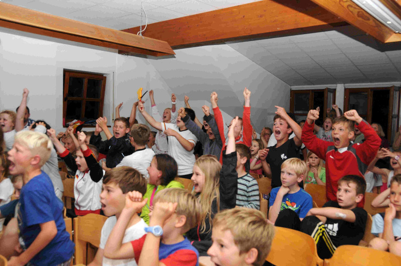 Am Dienstagabend um 22 Uhr schauten wir mit allen anderen Klassen auf einem großen Bildschirm das Fußballspiel „Brasilien gegen Deutschland“. Nach 29 Minuten hatte Deutschland schon 5 Tore! Es war unglaublich! Wir jubelten und jubelten. In der zweiten Halbzeit schoss Deutschland noch zwei weitere Tore. In den letzten fünf Minuten erzielten die Brasilianer einen Gegentreffer. Deutschland gewann 7 : 1 gegen Brasilien. Wir freuten uns total! Gegen Mitternacht war das Spiel zu Ende und wir gingen in unsere Zimmer. Wir brauchten nicht lange um einzuschlafen. Die Nacht war sehr kurz. Am nächsten Morgen mussten wir schon um halb acht wieder am Frühstückstisch sitzen.
