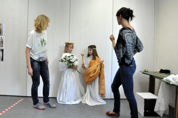 Sogar Amor, Hermes und andere Gottheiten aus der Antike wurden auf dem Schulfest gesichtet. Drapiert in Tüchern und ausgestattet mit den notwendigen Utensilien ließen sich die Schüler von Sonja Leins und Adriane Wenigerkind als göttliche Statuen ablichten.