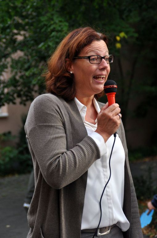 Im Anschluss daran bedankte sich Schulleiterin Nicole Achter bei allen Helfern, die in den vergangenen Monaten, Wochen und Tagen zusammengeholfen hatten, um für diesen großen Tag alles vorzubereiten, lud die Ehrengäste ins Atrium ein und alle anderen Gäste auf den vorderen Pausenhof und wünschte viel Spaß und vergnügliche Stunden auf dem Schulfest! Der Elternbeirat verwöhnte alle Gäste kulinarisch mit Unterstützung vieler fleißiger Eltern in gewohnter Qualität und Vielfalt.