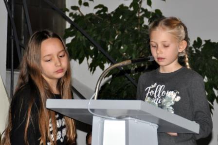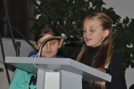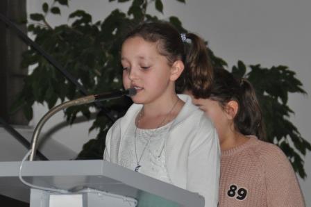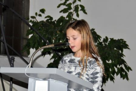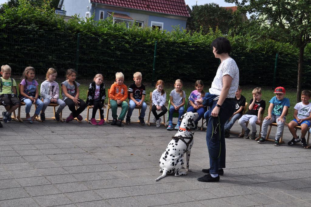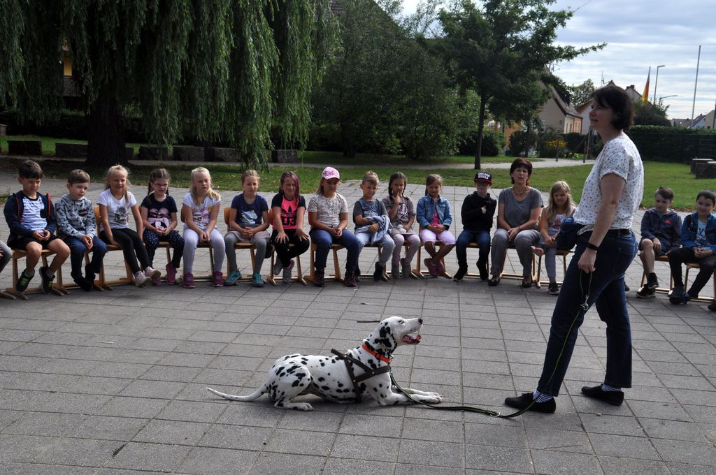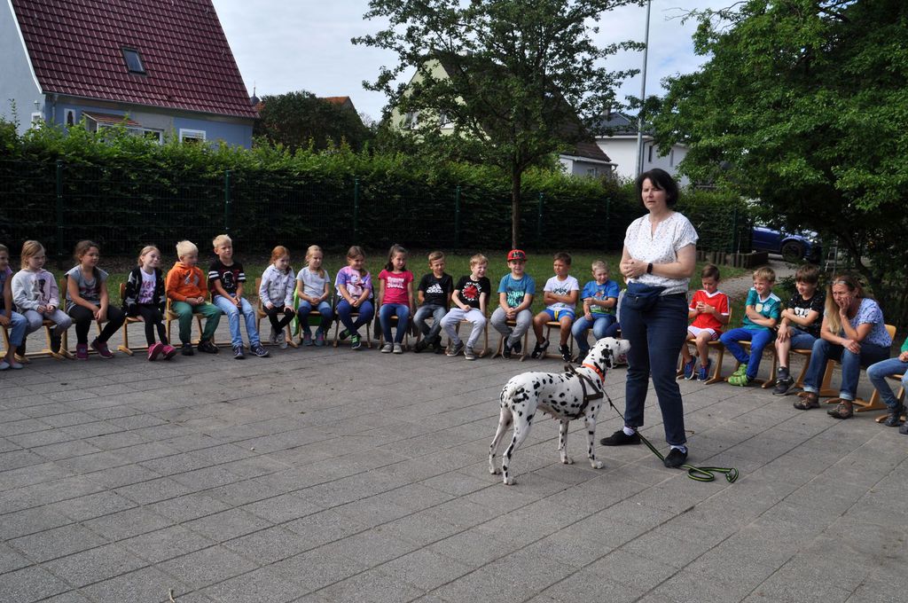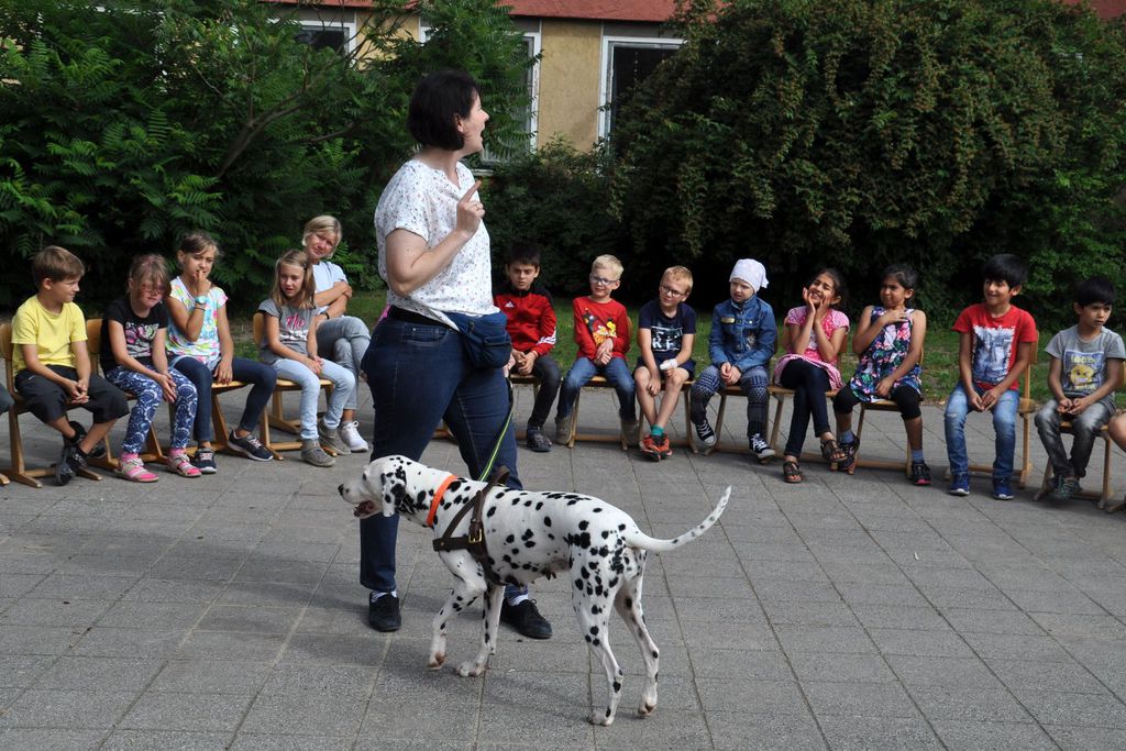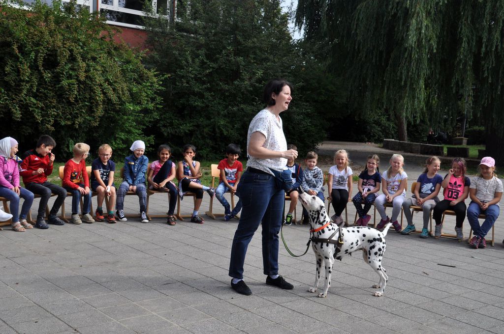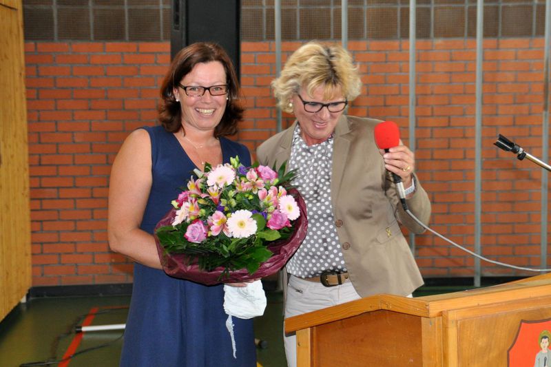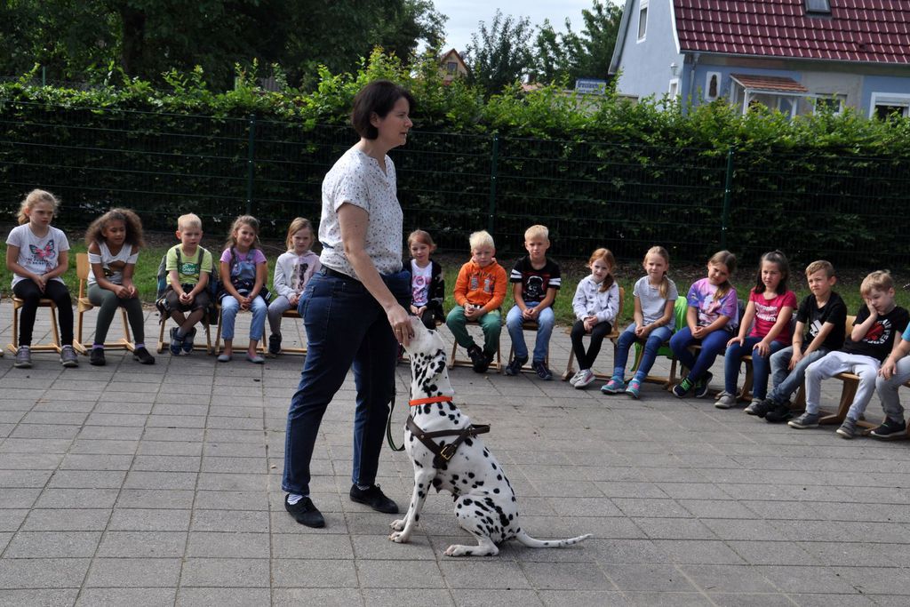 Im Anschluss daran wurden die neuen Erstklässler von den Zweitklässlern und ihren Lehrerinnen Frau Schmitt und Frau Wegner mit einem Lied willkommen geheißen. Rektorin Nicole Achter begrüßte alle Gäste und erklärte, dass neben dem Kopf und den Händen, die täglich in der Schule gebraucht werden, vor allem auch das Herz eine ganz wichtige Rolle spielt. Nur wenn wir mit dem Herzen bei der Sache sind, kann eine Arbeit gelingen und wir können uns nicht nur zu klugen und geschickten, sondern auch zu freundlichen, mitfühlenden und hilfsbereiten Menschen entwickeln. Und weil dies gemeinsam viel leichter geht, sangen alle zusammen das Lied „Hand in Hand“.