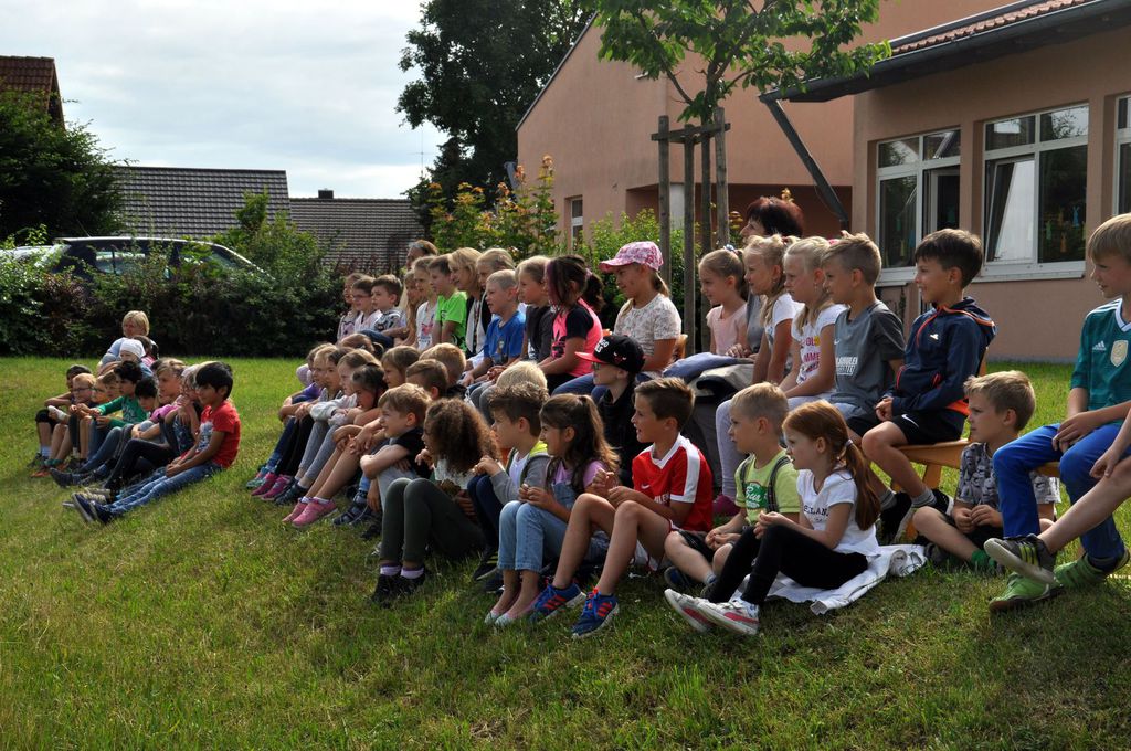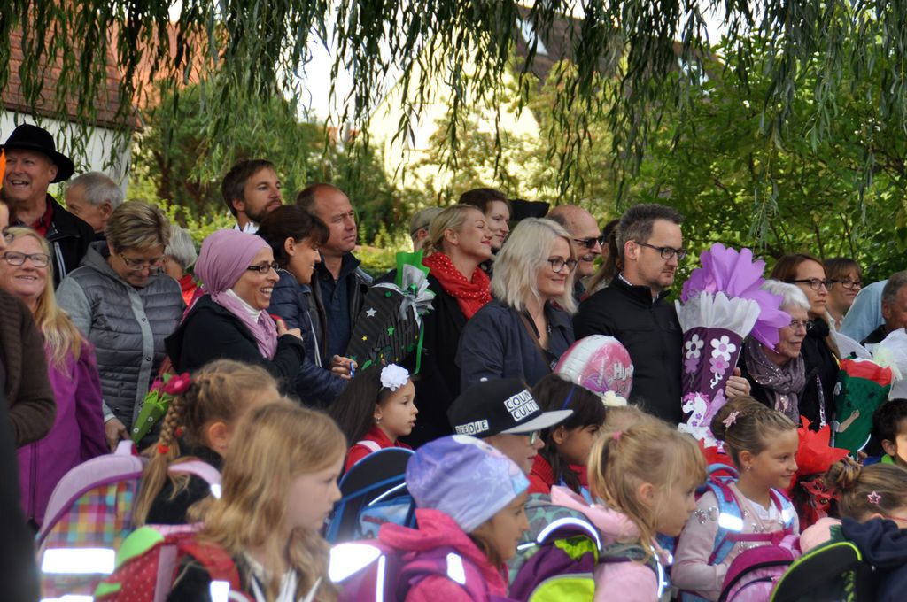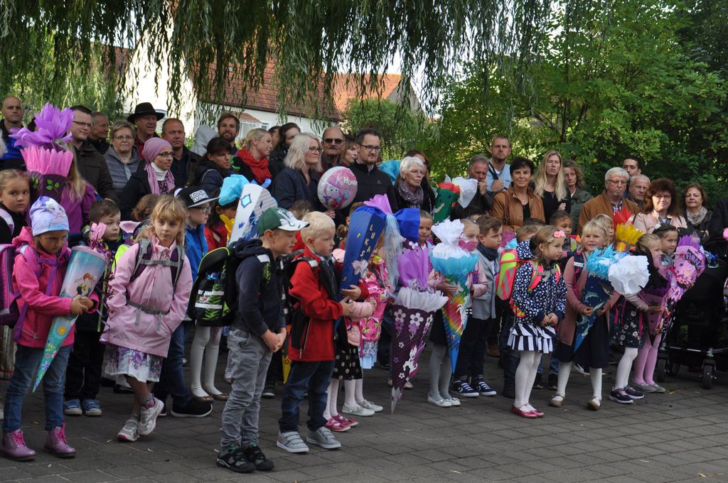 Im Kleinlangheimer Schulhaus begannen 82 Dritt- und Viertklässler den Tag in der evangelischen Kirche Kleinlangheim, wo Pfarrer Homuth den Kindern und ihren Lehrern Gottes Segen für das neue Schuljahr mit auf den Weg gab.