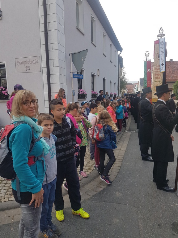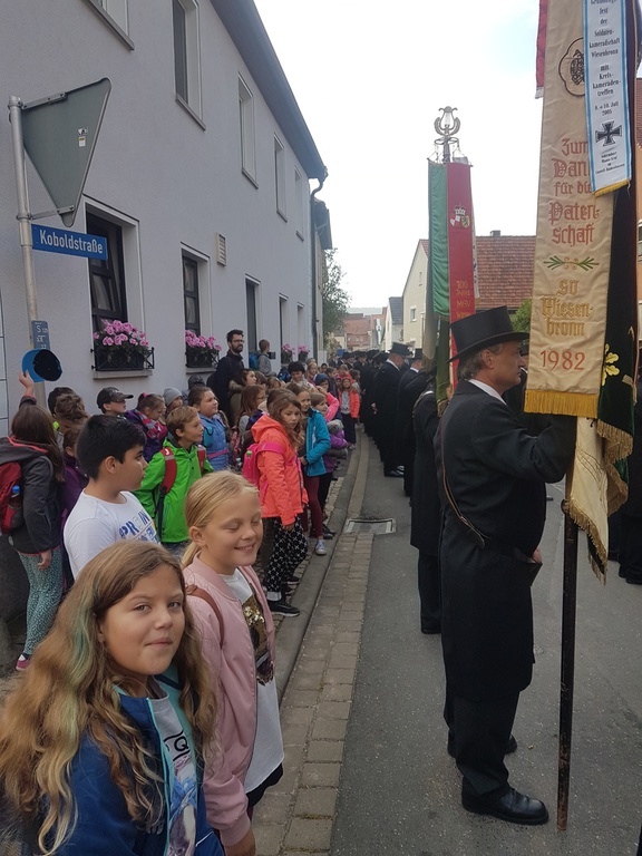 Traditionell wanderten die Dritt- und Viertklässler der GS Kleinlangheim auch dieses Jahr wieder zum Bürgerauszug anlässlich der Wiesenbronner Kirchweih. Nach einem strammen Marsch, schönen herbstlichen Eindrücken in der Natur und einer kurzen Pause am Wegrand, erreichten Schüler und Lehrer Wiesenbronn pünktlich zur Aufstellung der Bürgerwehr. Bürgermeisterin Doris Paul begrüßte alle Gäste und anwesenden Bürger, dankte allen Beteiligten für ihr Engagement und wünschte den Schützen viel Erfolg. Von den Dritt- und Viertklässlern mit vielen Preisen angeführt und musikalisch umrahmt, zog anschließend ein großer Zug zum Schützenhaus, wo das Bürgerschießen stattfand. Als Dankeschön für die Beteiligung der Grundschüler gab es kostenlose Würstchen und Getränke.