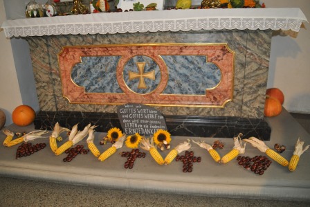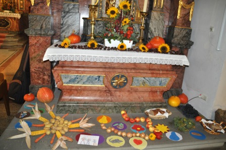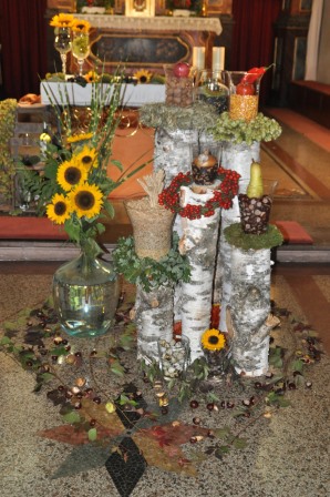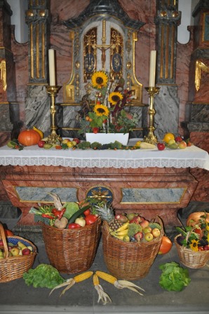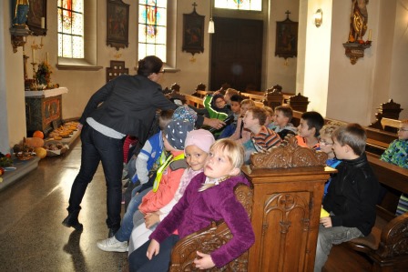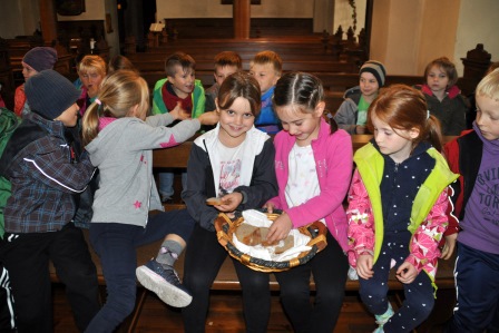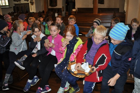 Am Montag, den 2. Oktober, feierten die evangelischen und katholischen Kinder der ersten und zweiten Klassen eine Erntedankandacht in der Großlangheimer St. Jakobus Kirche. Mit Gebeten, Liedern, Fürbitten und einer Geschichte brachten die Religionslehrerinnen Nicole Achter, Karola Rimmel und Kerstin Schiersch ihren Kindern in der wunderschön geschmückten Kirche eindrucksvoll nahe, wie dankbar wir für unser tägliches Brot sein können. Gemeinsam teilten alle das mitgebrachte Brot und dankten dafür, dass wir täglich satt werden können, was für viele Menschen auf der Welt leider nicht selbstverständlich ist.