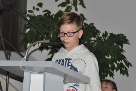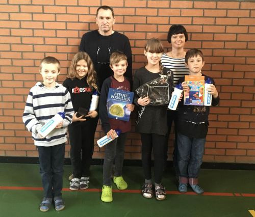 Am Dienstag, den 7. November versammelten sich alle Dritt- und Viertklässler der GS Kleinlangheim in der Kleinlangheimer Turnhalle, um die Sieger der ersten Runde der zehnten Unterfränkischen Mathematikmeisterschaft 2017 zu feiern, die am Dienstag, den 17. Oktober durchgeführt wurde. Annette Spitzer, Stellvertretende Schulleiterin in Kleinlangheim, begrüßte alle Anwesenden und zeigte sich erfreut, dass so viele Viertklässler sich den kniffeligen Aufgaben gestellt hatten. Musikalisch stimmten sich alle Schülerinnen und Schüler zusammen mit Schulleiterin Nicole Achter an der Gitarre mit dem Schullied auf die Preisverleihung ein. Die Klassenlehrer Manfred Halbritter und Ingrid Wagenhäuser überreichten den jeweils besten Mädchen und Jungen jeder Klasse einen Preis und wünschten den Schulsiegern Julia Schweinoch und Philipp Saenger für die zweite Runde, die am 15. November in der Wiesentheider Nikolaus-Fey-Schule stattfindet, viel Erfolg. Dort werden jeweils die Schulsiegerinnen und die Schulsieger um die Kreismeisterschaft wetteifern. Die beiden Sieger des Kreisentscheides werden dann am 12. Dezember nach Würzburg zur finalen Meisterschaft fahren.
