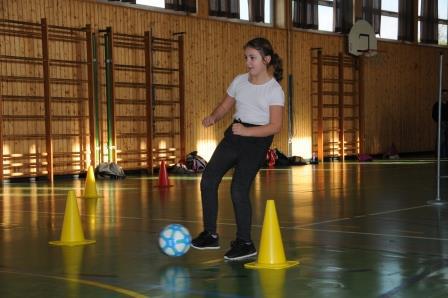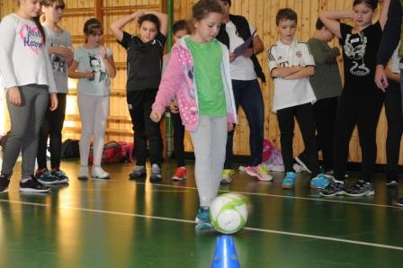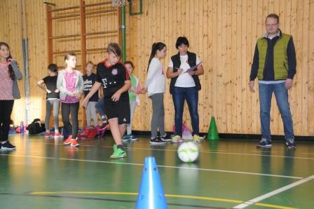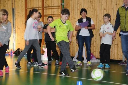 Beim „Gruppenspiel“ war gekonntes Dribbeln um Hütchen gefragt – die schnellste Mannschaft erzielte dabei auch die meisten Punkte.