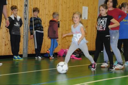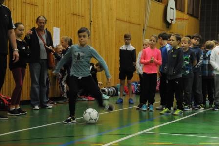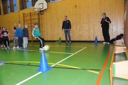 Ein „Kurzpass-Ass“ wurden alle Kinder die gekonnt mehrmals gegen eine gekippte Bank schießen und den Ball anschließend wieder aufnehmen konnten.