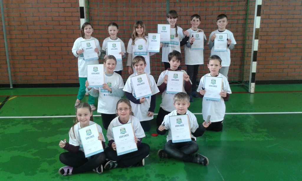Am 30. November fand die Auszeichnung unserer „Ballhelden“ statt. In beiden Schulhäusern wurden jeweils die besten Sportler und die fleißigsten Spendensammler der 1. und 2. beziehungsweise der 3. und 4. Klassen mit insgesamt 30 „Ballhelden“ T-Shirt von Schulleiterin Nicole Achter belohnt. Danach erhielten weitere erfolgreiche Sportler einen kleinen Trostpreis und alle 78 Kinder, die durch ihre sportliche Leistungen Spenden erzielt hatten, freuten sich über ein kleines, handgefertigtes Stofflama. Die Lamas waren ein Dankeschön vom Kinderhaus CASADENI in Peru. Zum Schluss bekam jedes Kind seine Ballhelden-Urkunde überreicht und alle sangen und tanzten noch einmal gemeinsam zur Ballhelden-Hymne. Insgesamt kamen bei der Spendenaktion beeindruckende 1554,58 € zusammen, die von der Schulleitung auf 1600,- € aufgestockt wurden. Ein herzliches Dankeschön an alle Spender!