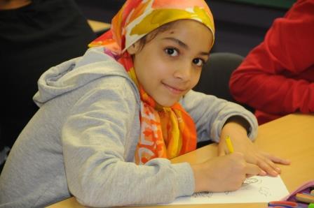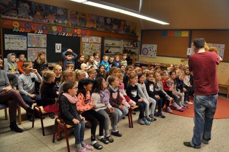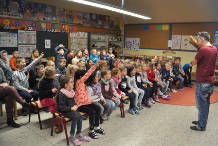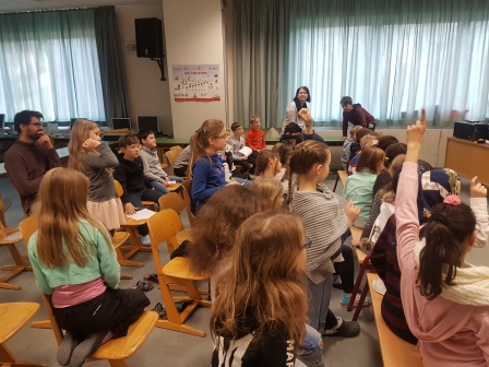 Nachdem Frau Clas den Kindern das erste Kapitel ihres Buches vorgelesen hatte, stellte sie sich den Fragen der Schülerinnen und Schüler, die sich sowohl um ihr Buch, ihre Arbeit als auch ihr Privatleben drehten.