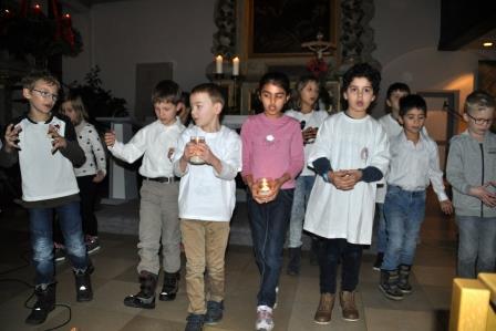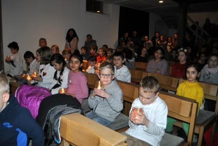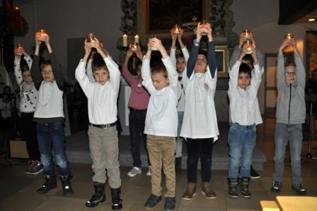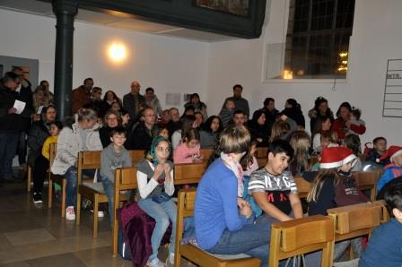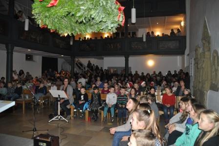 Musikalisch umrahmt wurde die Feier von Walter Kress an der Orgel, Schulleiterin Nicole Achter an der Gitarre und allen Kindern der Grundschule Kleinlangheim. Durch das Programm führten Schüler der vierten Klasse. Gleich zu Beginn sangen alle Kinder mit viel Begeisterung das schwungvolle Lied „Vor 2000 Jahren“, das die Zuhörer an die Geburt Christi erinnern wollte. Dem schlossen sich ein bunter Mix aus traditionellen und modernen Weihnachtsliedern und -gedichten an. Bei den klassischen Weihnachtsliedern, wie „Oh du fröhliche“ und „Vom Himmel hoch, da komm ich her“, stimmten alle Gäste kräftig mit ein. Mit dem Lied „Halleluja“ endete das diesjährige Konzert, das die Zuhörer in eine vorweihnachtliche Stimmung versetzte. Am Schluss gab es viel Applaus für die mitwirkenden Künstler.