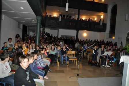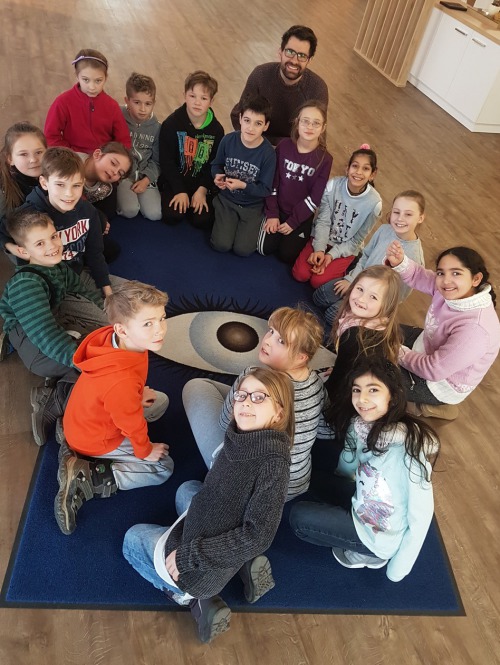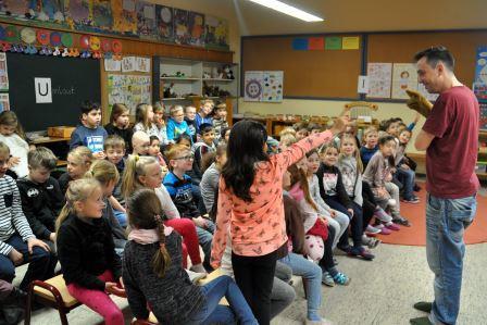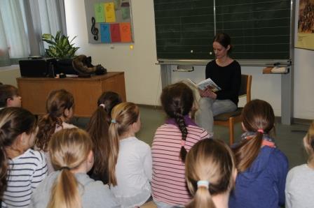 Autorin Catharina Clas stellte am Mittwoch, den 28. Februar den Dritt- und Viertklässlern ihr Buch "Anton aus der Amselgasse" vor. Passend zum Jahresthema Geschichte geht es darin um den Jungen Anton, der nach dem Einschlafen in seinem 600 Jahre alten Bett plötzlich im Mittelalter bei den Rittern landet und dort einige Abenteuer erlebt. Am Morgen erwacht er wieder in seinem Bett. War vielleicht alles nur ein Traum oder kann er auch in der nächsten Nacht wieder in eine andere Zeit verreisen?
