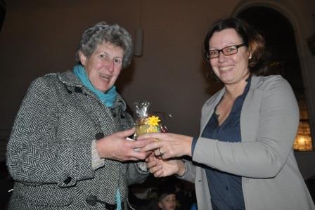 Mit einem kleinen Geschenk und einem großen Applaus bedankten sich Lehrer und Schüler für den tollen Vormittag, für die Zeit und Mühe, die die Mitarbeiter investierten und vor allem bei Frau Bergmann, die diesen Besuch erst ermöglichte.
