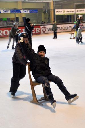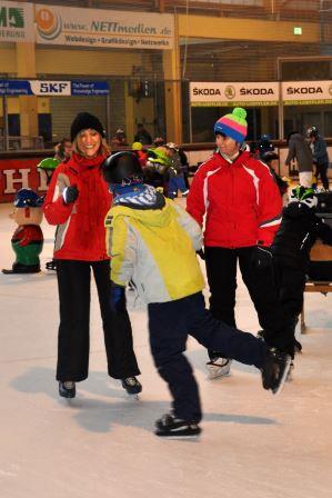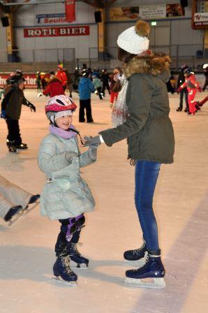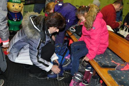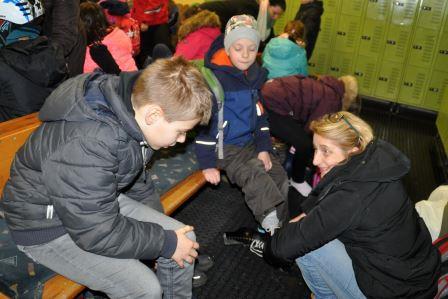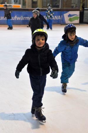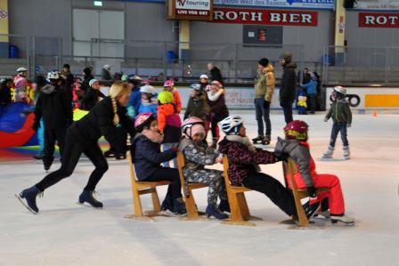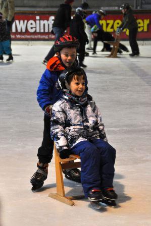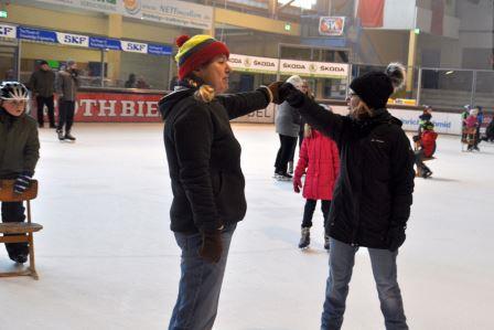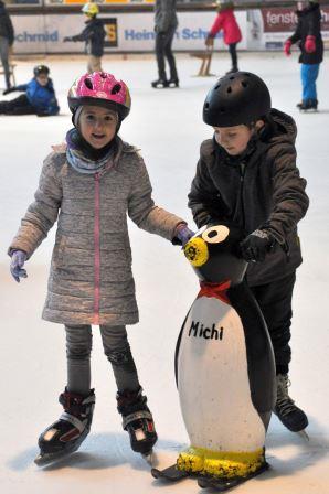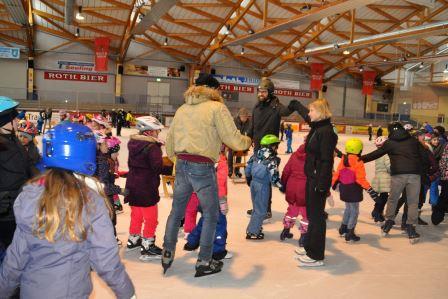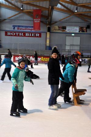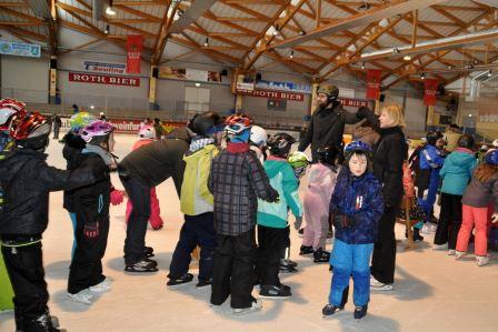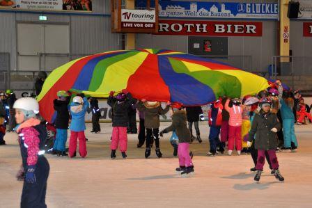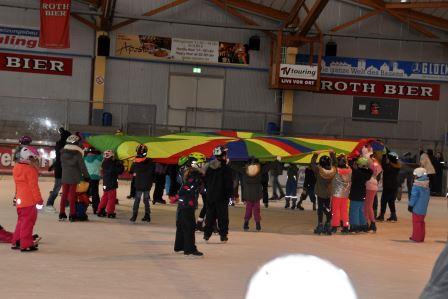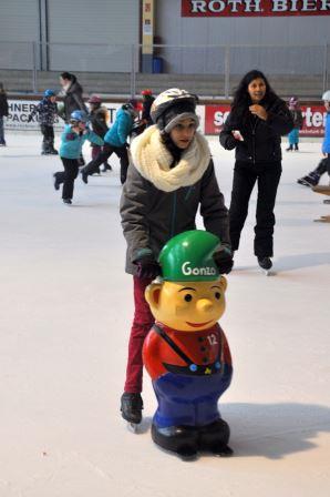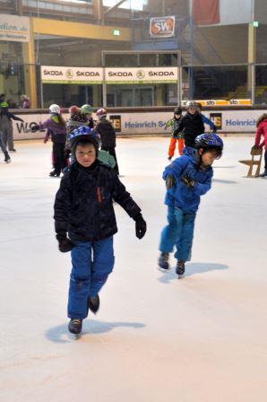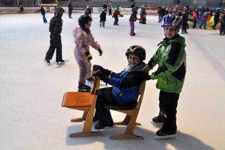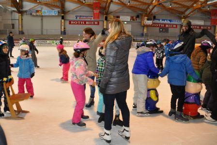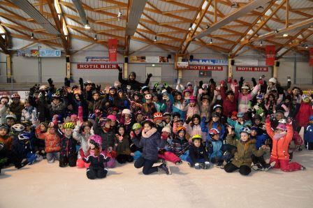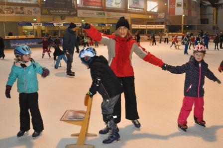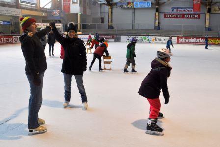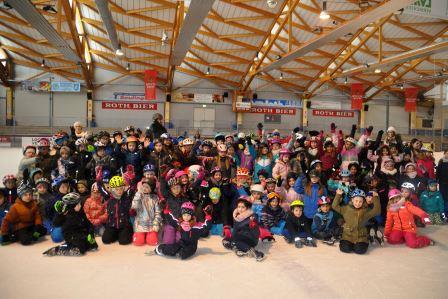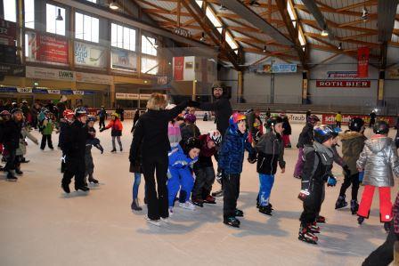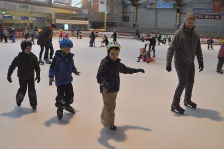 Wie bereits zur Tradition geworden, besuchten auch in diesem Schuljahr die Schülerinnen und Schüler der Kleinlangheimer Grundschule die Eishalle in Schweinfurt. Kurz nach 8 Uhr fuhren die Klassen 1 bis 4 mit ihren Lehrkräften in drei Bussen nach Schweinfurt, wo bereits einige Eltern vor der Eishalle warteten. Von 9 Uhr bis 12 Uhr konnten die Kinder sowohl als Anfänger wie auch als Fortgeschrittene ihre Fahrkünste auf dem Eis zeigen. Ob an der Hand eines Erwachsenen, mit einem Stuhl als Hilfe oder bei Spielen mit dem großen Fallschirm, jeder Schüler hatte auf seine Art Spaß und der Eislauftag wurde wieder zu einem gelungenen Ausflug. Bis auf kleinere Stürze verlief der Vormittag heil und die Schülerinnen und Schüler traten gegen Mittag zufrieden, aber etwas erschöpft, die Heimfahrt an.