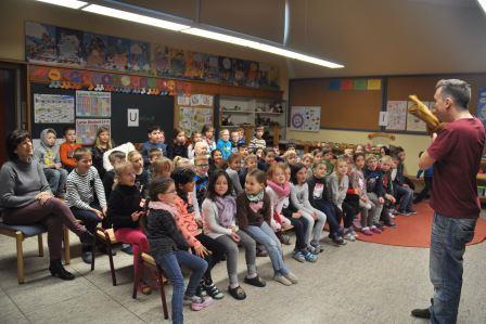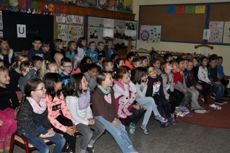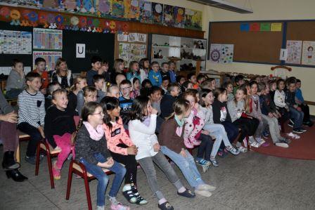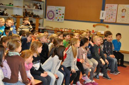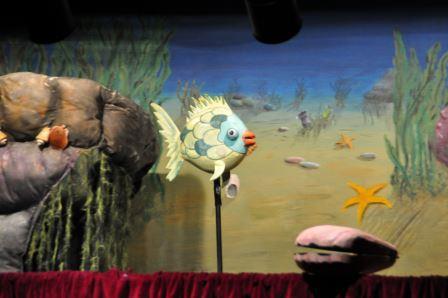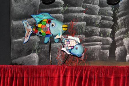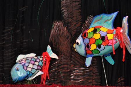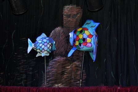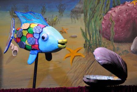 Am Mittwoch, den 18. Januar 2018 besuchte das Team der Harzer Puppenbühne die Grundschule in Großlangheim. Die Abenteuer des Regenbogenfisches erlebten die Kinder in 3 Akten. Die handgefertigten und liebevoll gestalteten Stabpuppen zogen die Kinder in ihren Bann. Spezielle Lichteffekte, das ansprechende Bühnenbild und die ausgewählte Musik sorgten dafür, dass die Schüler mit großer Spannung die aufregenden Herausforderungen der Meeresbewohner verfolgten.