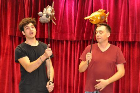 Nach der Vorstellung gewährten die Künstler den Kindern einen Blick hinter den Vorhang und lüfteten so manches Geheimnis des Stabpuppenspiels. Mit leuchtenden Augen verließen alle Zuschauer den Bühnenraum.