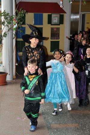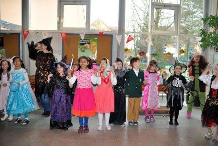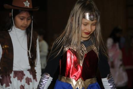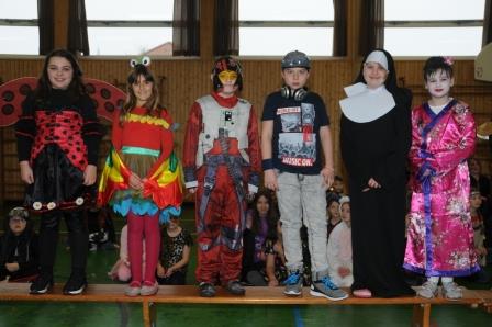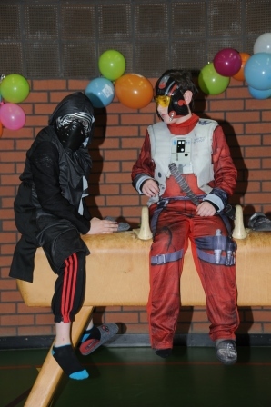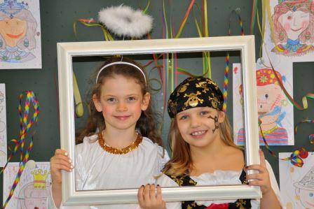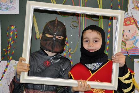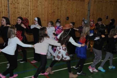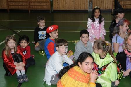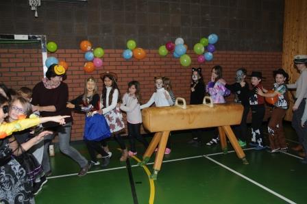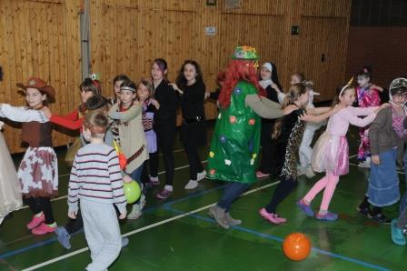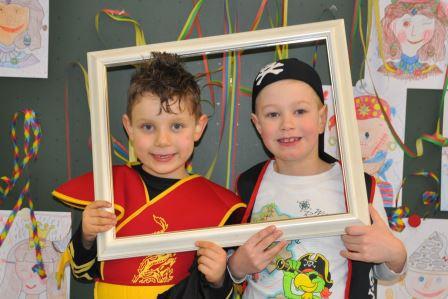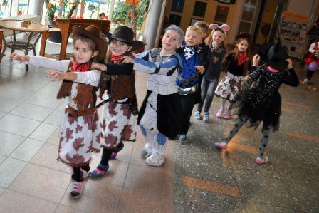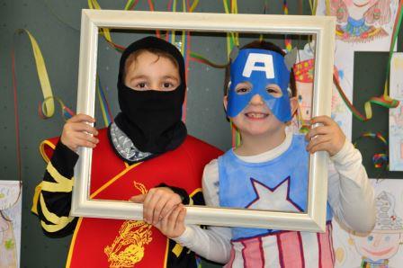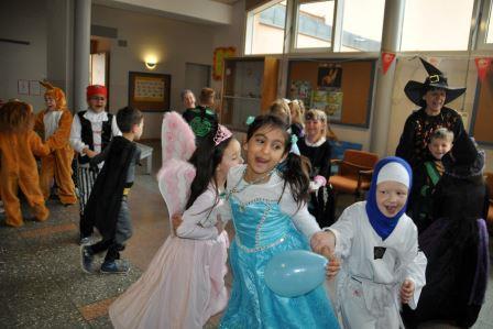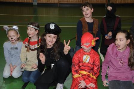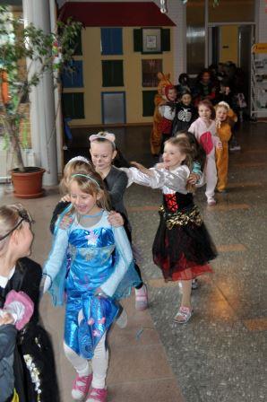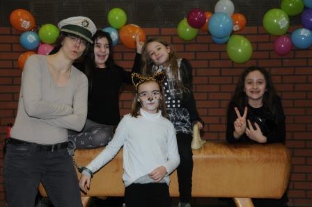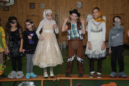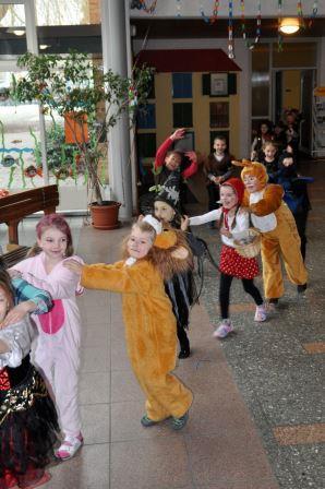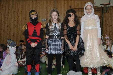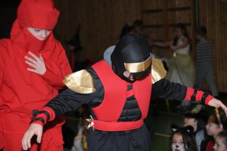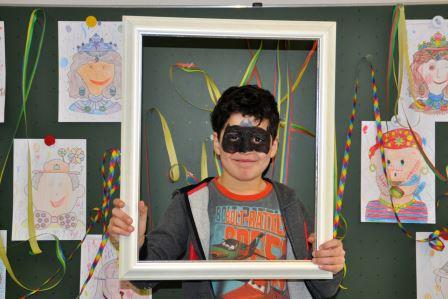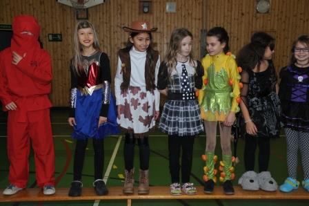 Nach der Pause startete das närrische Treiben mit Partyspielen wie Zeitungstanz, Zublinzeln, Reise nach Jerusalem u.v.a.m. in den Klassenzimmern. Die bunt verkleideten Erst- und Zweitklässler durften sich auch vor der Kamera präsentieren. Anschließend zog das Narrenvolk in einer Polonaise mit viel Helau durch das Großlangheimer Schulhaus. Beim „Fliegerlied“ und dem „Roten Pferd“ wurde ausgelassen getanzt, bis alle mächtig ins Schwitzen kamen. Dann endlich regnete es Süßigkeiten, die von den Kindern eifrig aufgesammelt wurden. Bestens gelaunt starteten die kleinen Narren schließlich in die Winterferien. Ein herzliches Dankeschön an alle Eltern, die für unsere Feier Luftschlangen, Süßigkeiten, Krapfen und Mohrenköpfen spendeten.