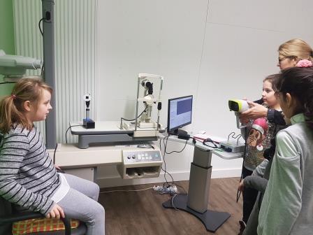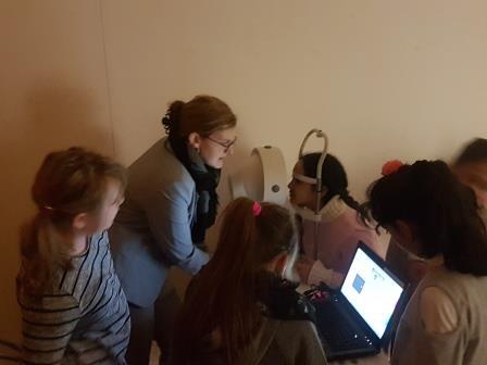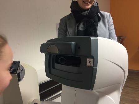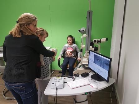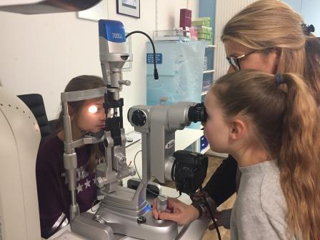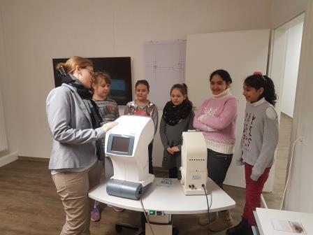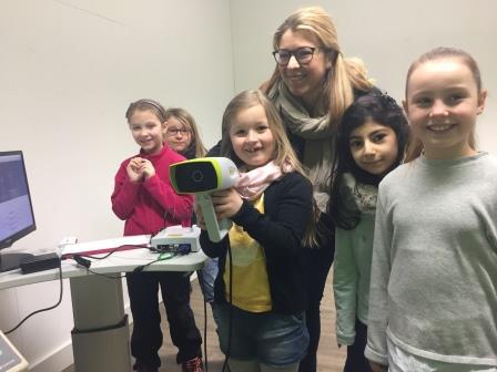 Nach der Begrüßung durch den Firmeninhaber und Augenoptikermeisters Dietmar Werner konnten die Kinder bei Augenoptikermeisterin Juliana Werner mit dem Tonometer ihren Augeninnendruck messen, sich die Netzhaut scannen lassen und dabei ihren gelben und blinden Fleck entdecken und mit der Pentacam die Dicke der Hornhaut messen.