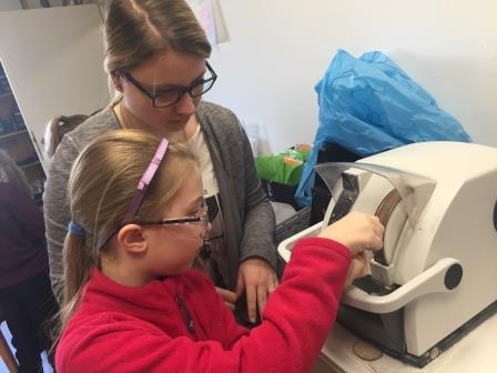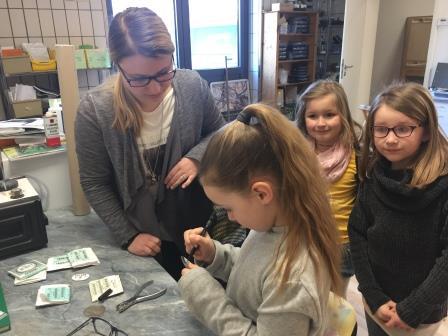 Bei Augenoptiker Johannes Werner und Auszubildende Lea Winkler konnten die Kinder in der Werkstatt selbst Gläser formen, schleifen und feilen und durften ihr gestaltetes Brillenglas mit nach Hause nehmen.