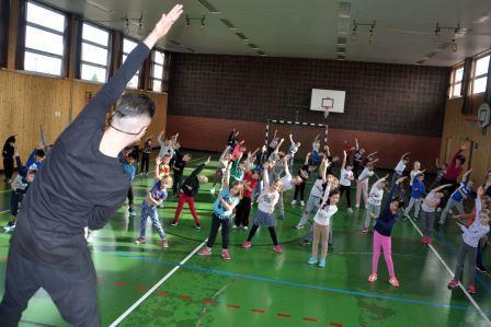 Unter dem Motto „Tanzen macht stark“ war am 5. März der Tanzlehrer Riad von den KDS Tanzschulen bei uns zu Gast. Riad begeisterte die Mädchen und Jungen aus allen Jahrgangstufen mit Hip-Hop-Moves zur coolen Musik.