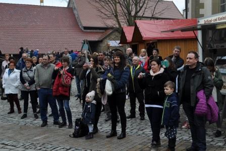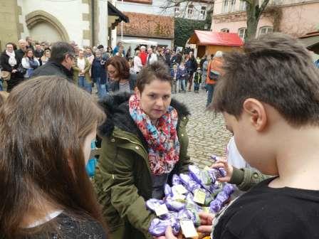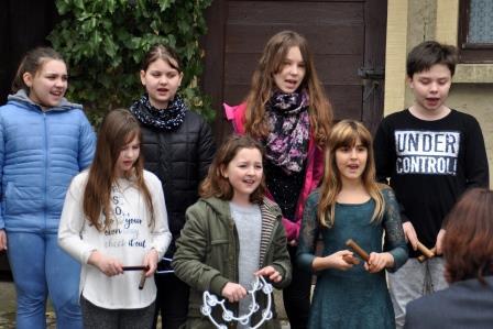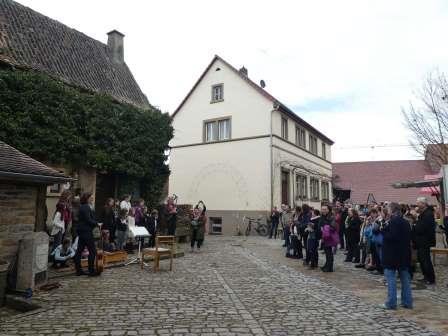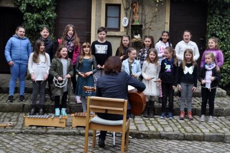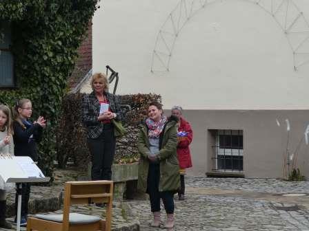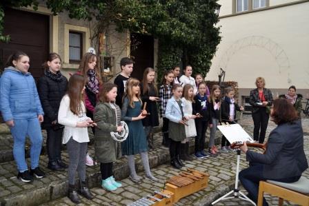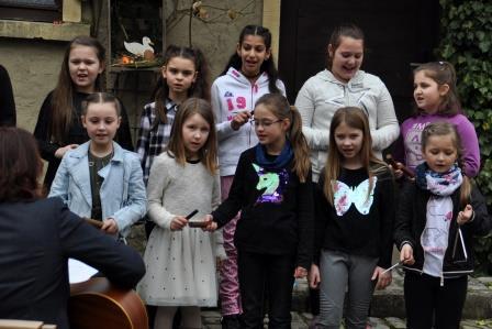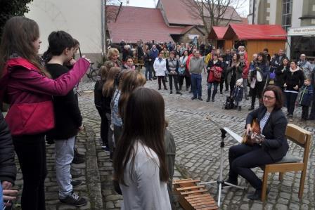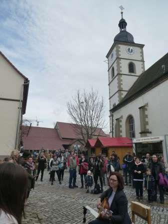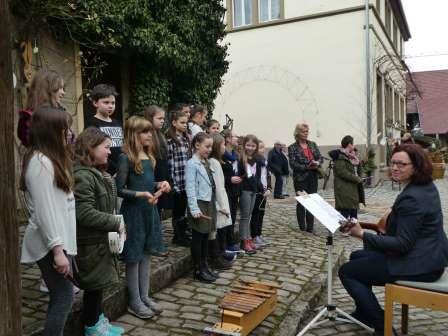 Schon traditionell eröffneten einige singbegeisterte Schülerinnen und Schüler der Grundschule Kleinlangheim zusammen mit ihrer Schulleiterin Nicole Achter das Frühlingserwachen in der Kleinlangheimer Kirchenburg. Den ersten Duft von Frühling erweckten die Kinder passend zu blauem Himmel und Sonnenschein mit ihrem Lied "Tiritomba". Nach der Begrüßung aller Gäste durch Bürgermeisterin Gerlinde Stier sangen die Schülerinnen und Schüler mit ihrem Lied "Easter rabbit" den Osterhasen herbei, der ihnen von der Vorsitzenden der Ortsfrauen Frau Walrapp in Schokoladenform auch gleich als Dankeschön überreicht wurde. Den Abschluss bildete das Lied "Kookaburra", das die Kinder zusammen im Dreierkanon präsentierten.