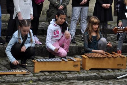 Zum Abschluss tanzten alle Schüler gemeinsam in der Turnhalle den Tanz zum Ballhelden-Song – unterstützt von einer kleinen Trommel-Combo.