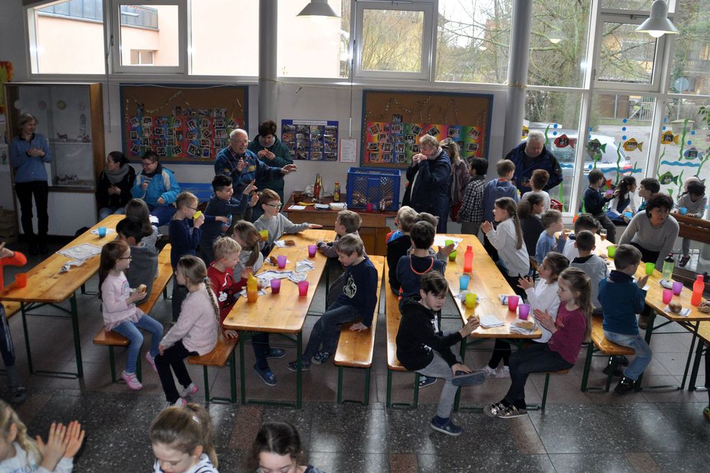 Dann ging es endlich in die Klassenzimmer! Dort hatten die Erstklasslehrerinnen Frau Rimmel und Frau Schiersch schon alles wunderbar für ihre neuen Schülerinnen und Schüler vorbereitet. Die Eltern und Gäste konnten sich in der Zwischenzeit am reichhaltigen Buffet stärken, das die Zweitklasseltern liebevoll vorbereitet hatten.