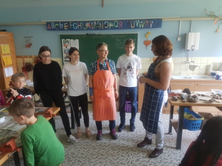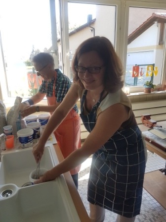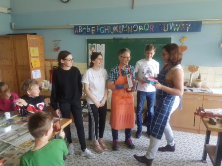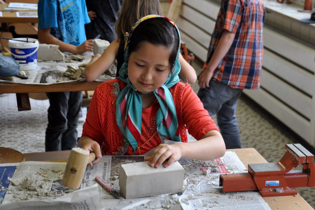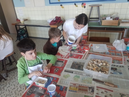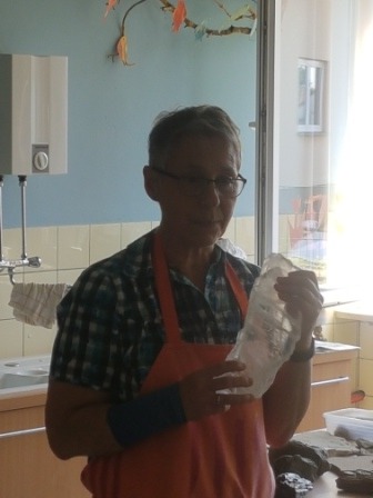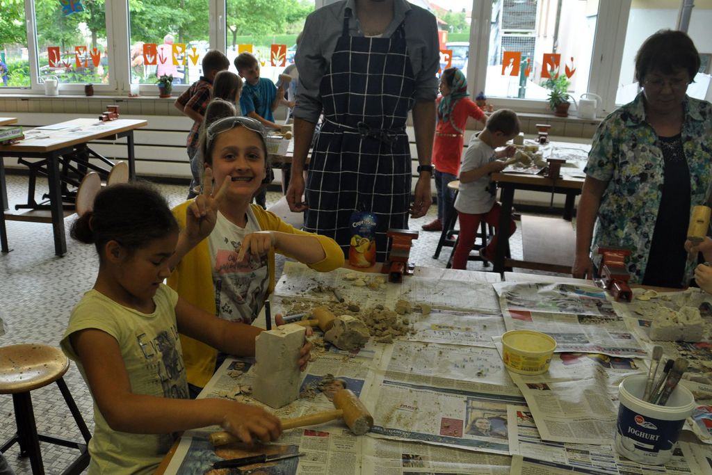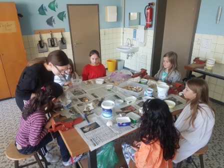 Nach dem Trocknen entfernten die Schülerinnen und Schüler vorsichtig Ihre Muscheln und Schneckenhäuser und gossen nach gründlichem Einfetten eine zweite Gipsschicht darüber. Jetzt hieß es Geduld zeigen, denn der Gips musste über Nacht gut durchtrocknen. Die Kinder und Lehrer bedankten sich mit einem Applaus und kleinen Geschenken bei Frau Sandmeyer-Haus und ihrem Team.