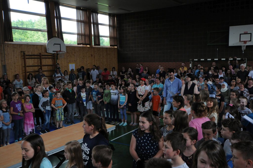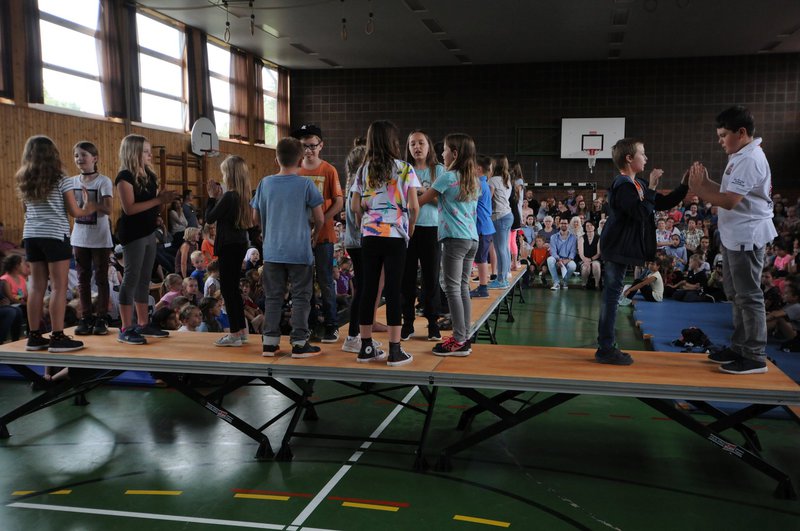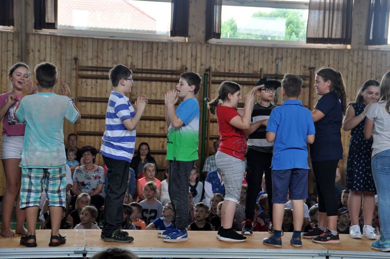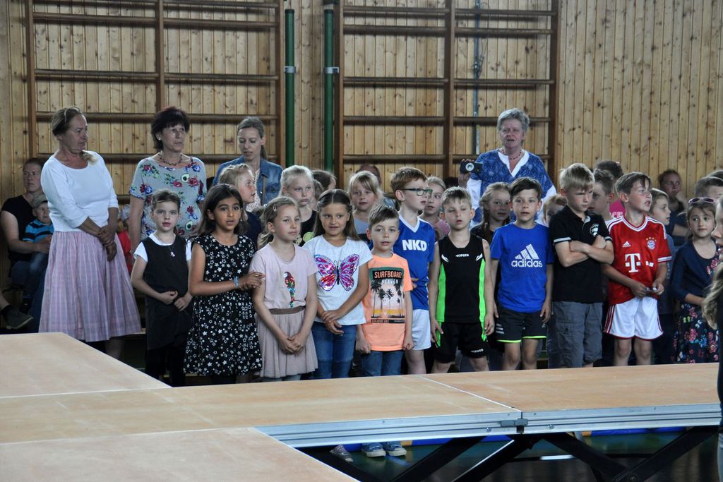 Nach dem Einzug aller Schüler, Lehrer und Ehrengäste in die vollbesetzte Turnhalle, eröffneten die dritten Klassen das Schulfest musikalisch mit einem Mailied. Rektorin Nicole Achter begrüßte alle Gäste und freute sich, dass sich Schulrat Veit Burger, die ehemaligen Schulleiter Lorenz Strasser und Andrea Böhm, viele ehemalige Kollegen und die Bürgermeister der drei Gemeinden des Schulverbandes Gerlinde Stier, Doris Paul und Karl Höchner, sowie Altbürgermeister und ehemaliger Schulverbandsvorsitzender Roland Lewandowski die Zeit genommen hatten, um einige unbeschwerte Stunden miteinander zu feiern.
