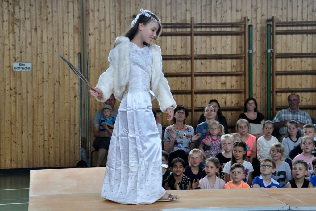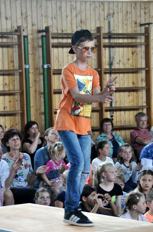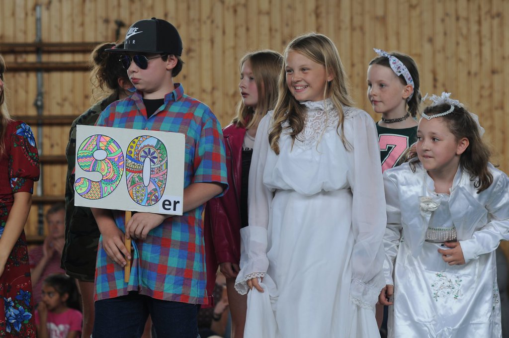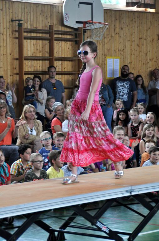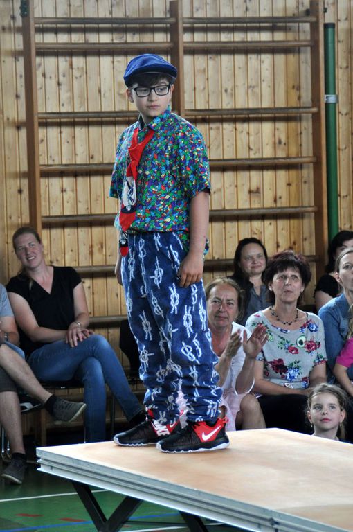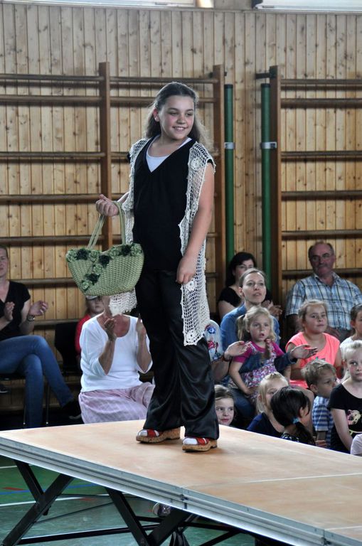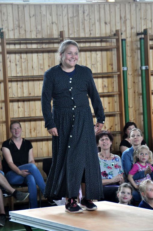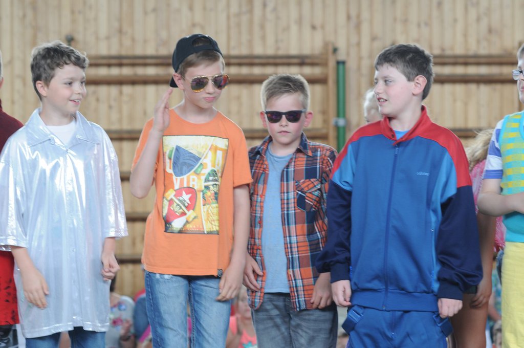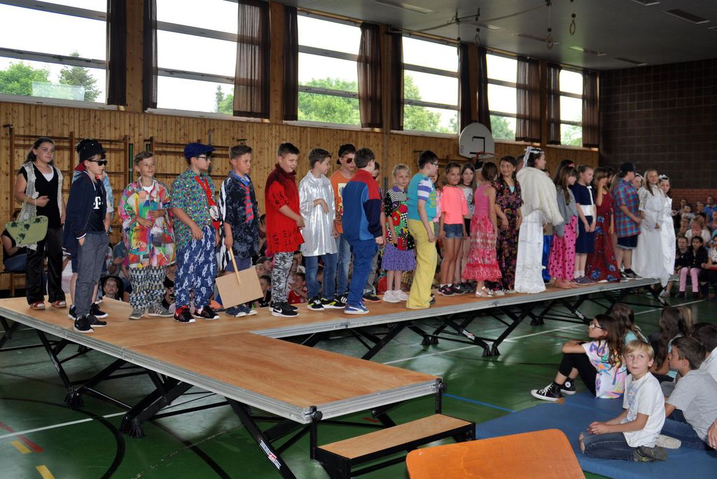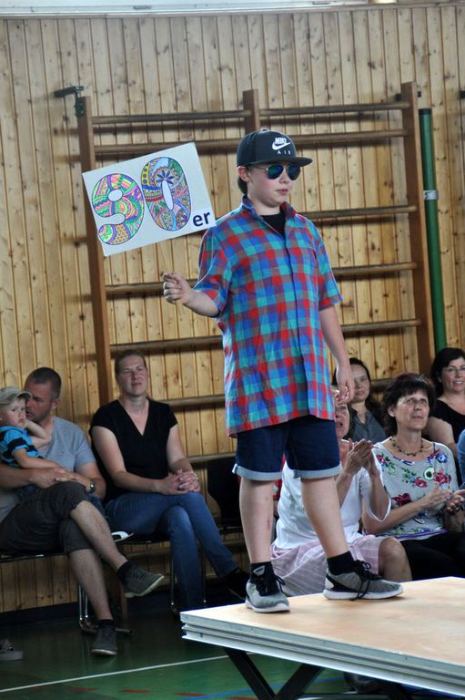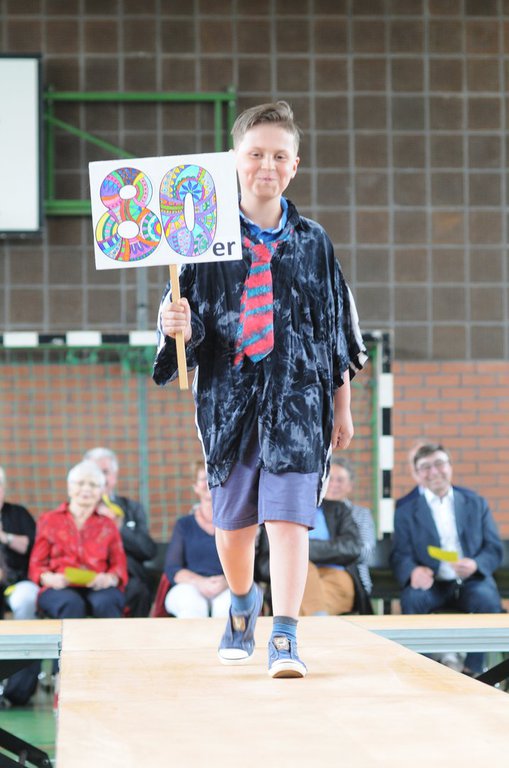 Den krönenden Abschluss des offiziellen Teils bildete eine Modenschau der 70er, 80er und 90er Jahre, die die Viertklässler mit ihrer Lehrerin Julia Hohm voller Engagement und unter großem Applaus präsentierten.