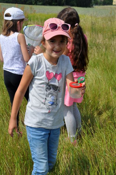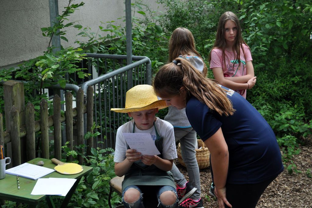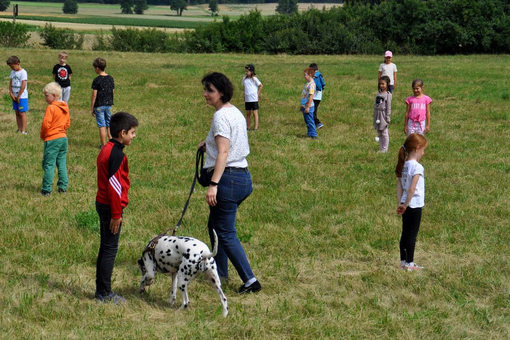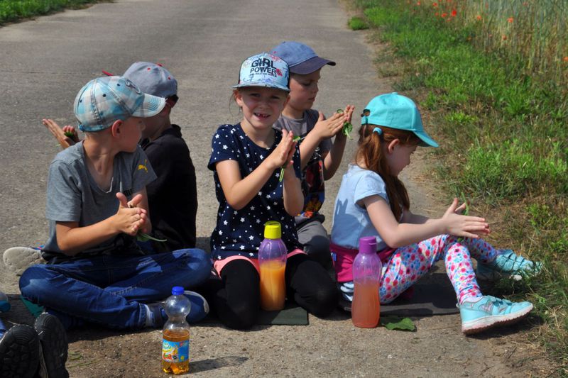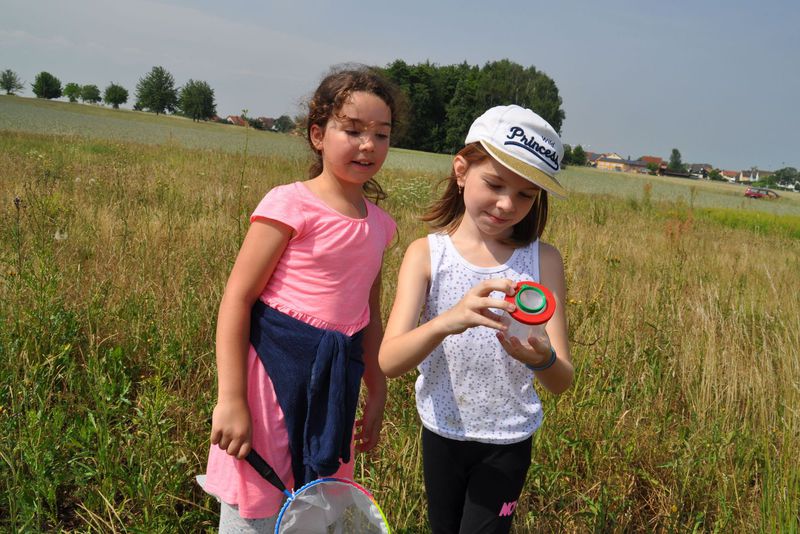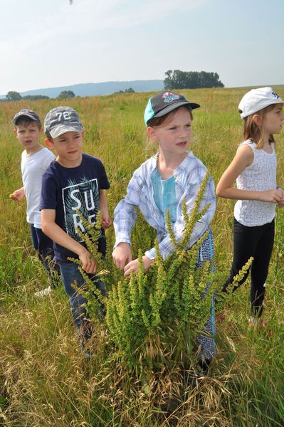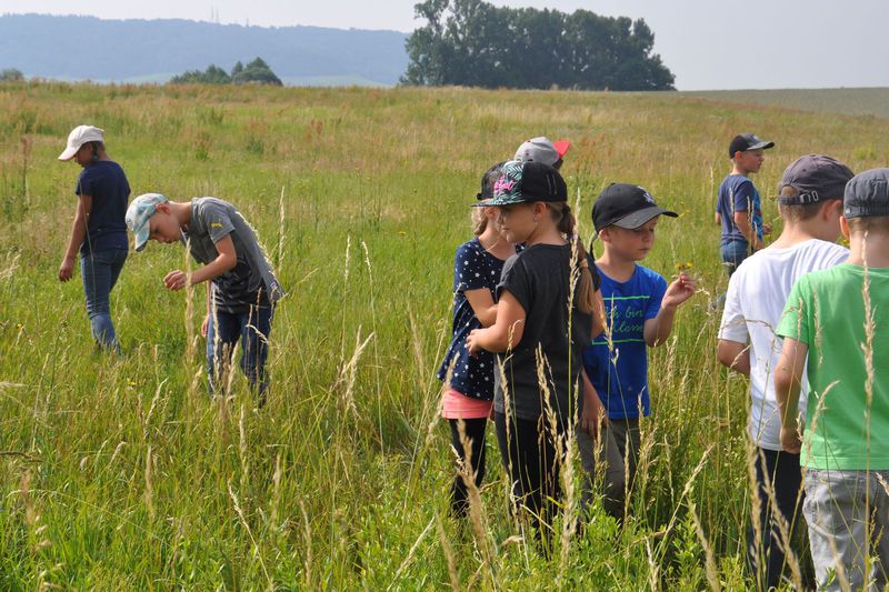 Die Erstklässler erkundeten die Wiese und lernten mit allen Sinnen viel über die Tier- und Pflanzenwelt und über Heilkräfte und Nutzen der von Pflanzen für Mensch und Tier.