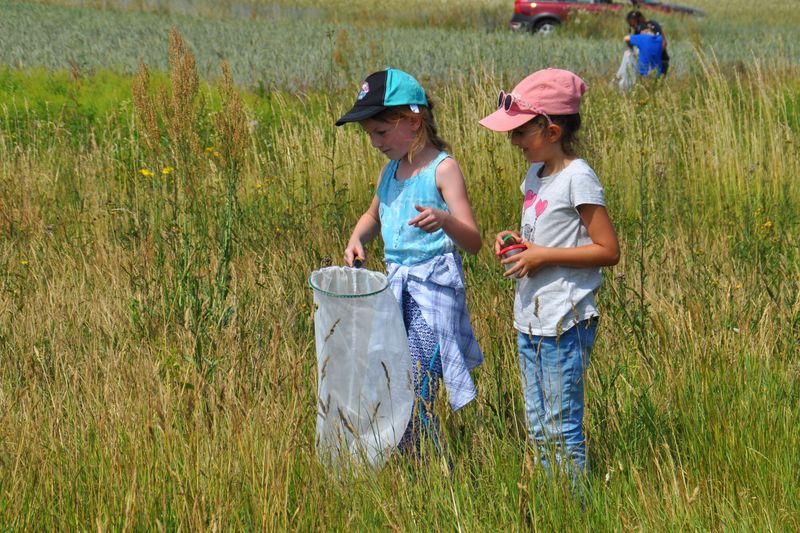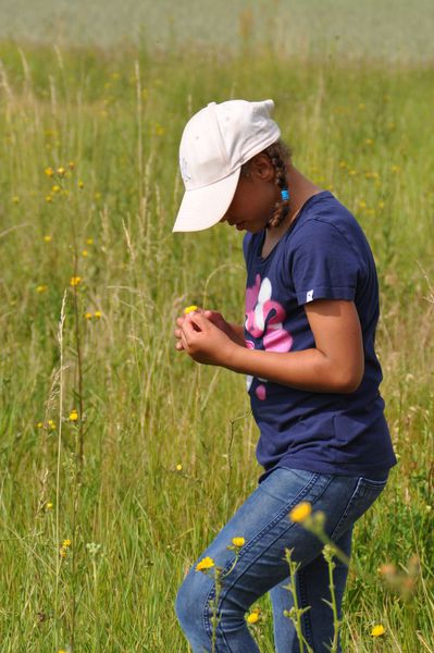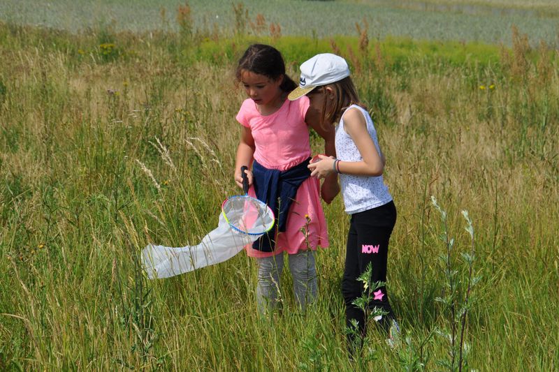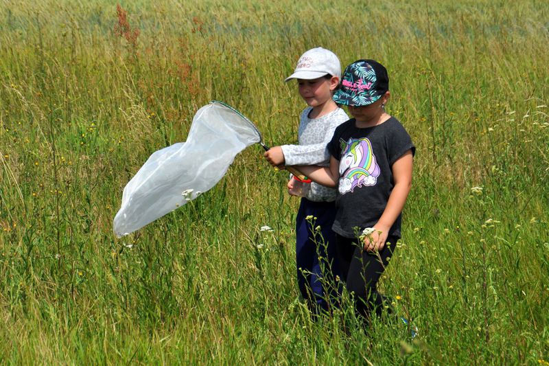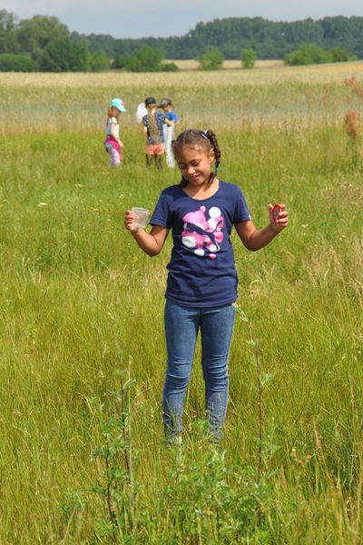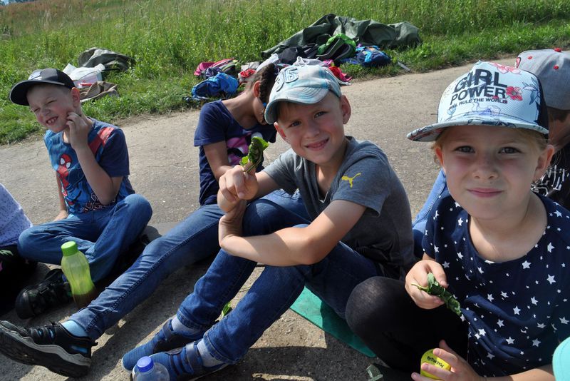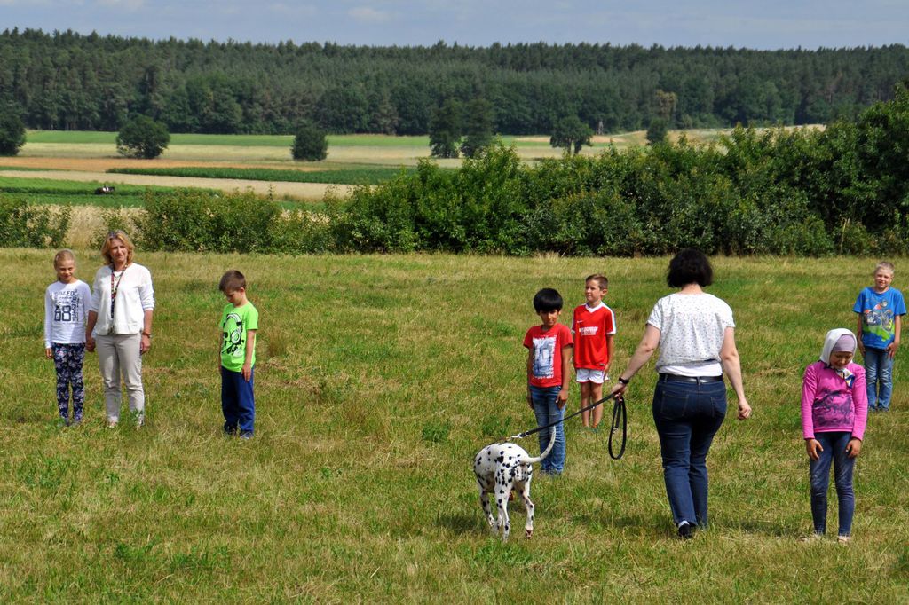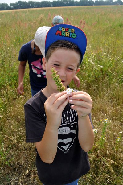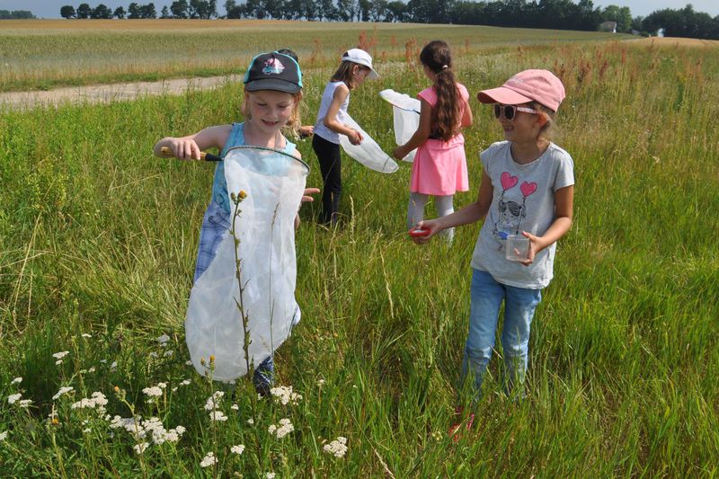 Die Erstklässler erkundeten die Wiese und lernten mit allen Sinnen viel über die Tier- und Pflanzenwelt und über Heilkräfte und Nutzen der von Pflanzen für Mensch und Tier.