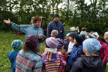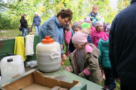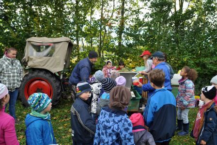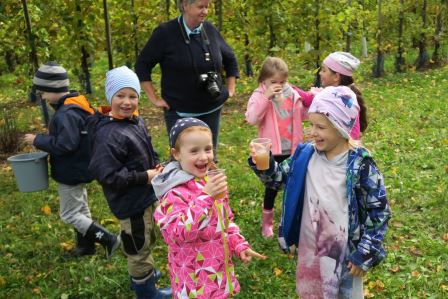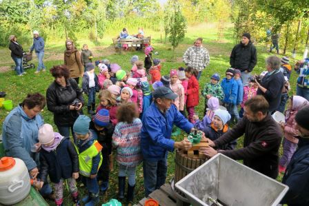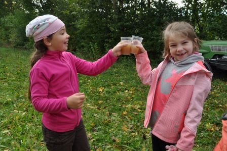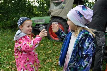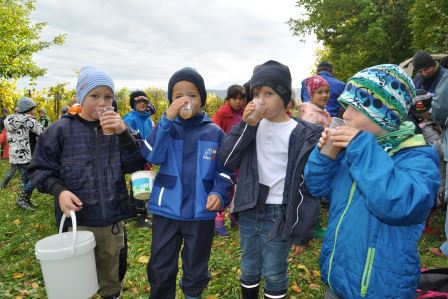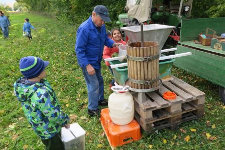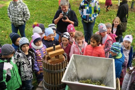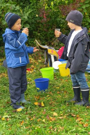 Im Herbst fragten sich die ersten und zweiten Klassen "Wie kommt der Saft aus dem Apfel?" und besuchten dazu das Kirchenburgmuseum in Mönchsondheim, um Äpfel zu ernten, zu keltern und natürlich den frisch gespressten Saft zu trinken.